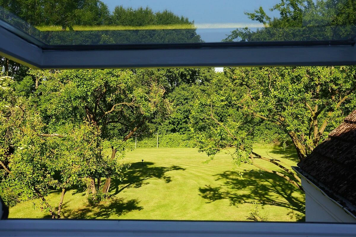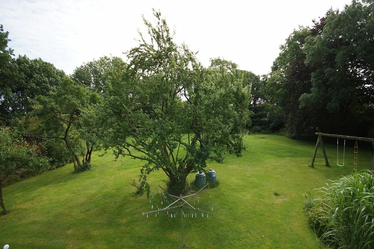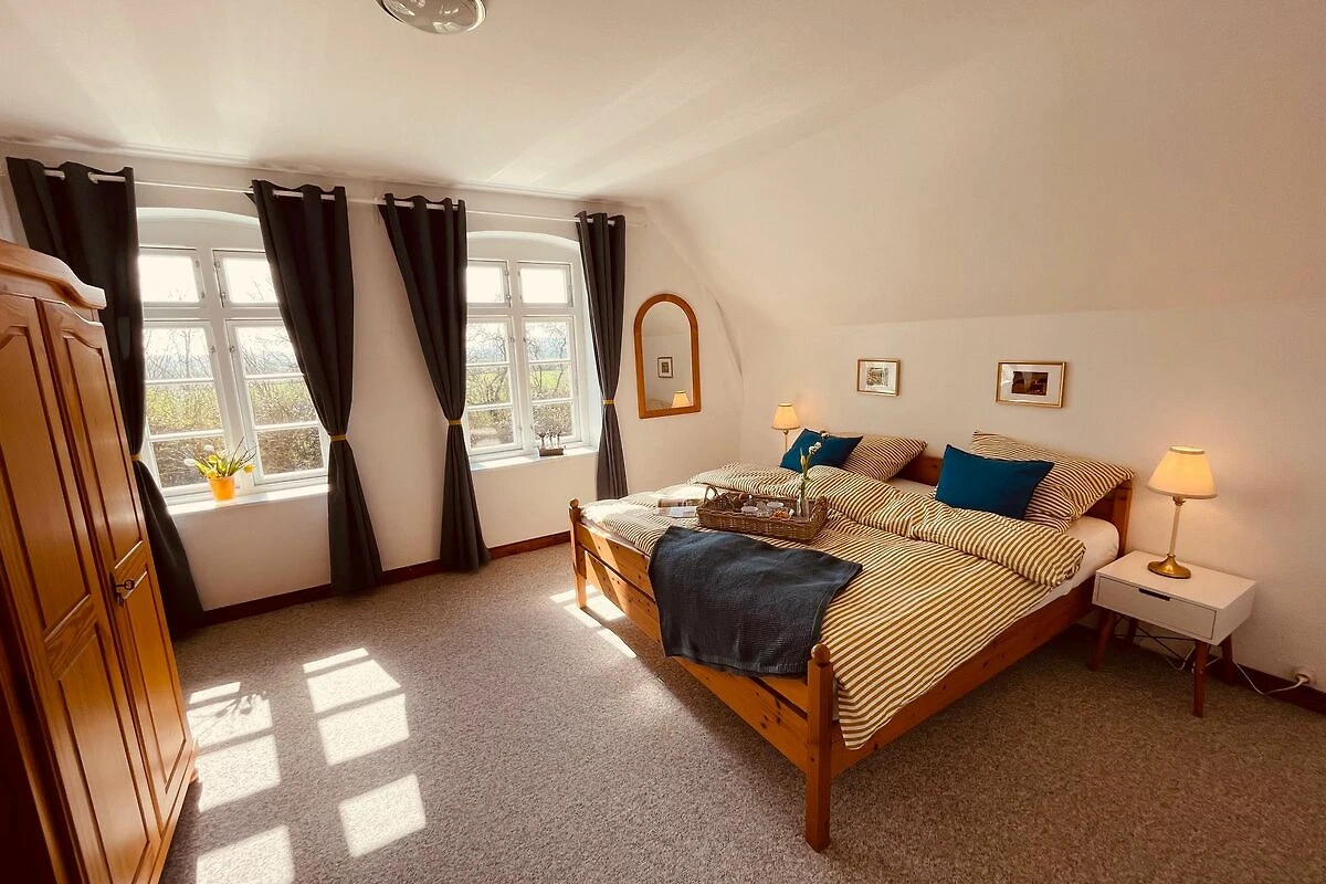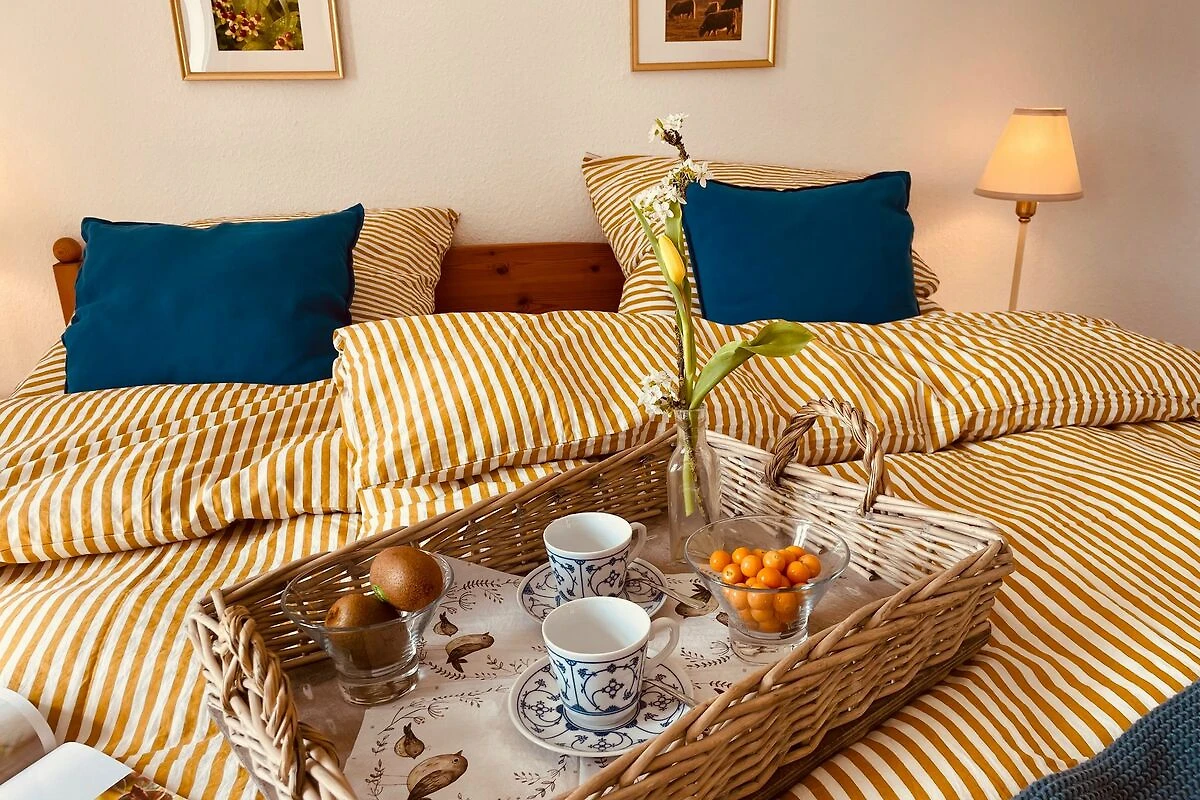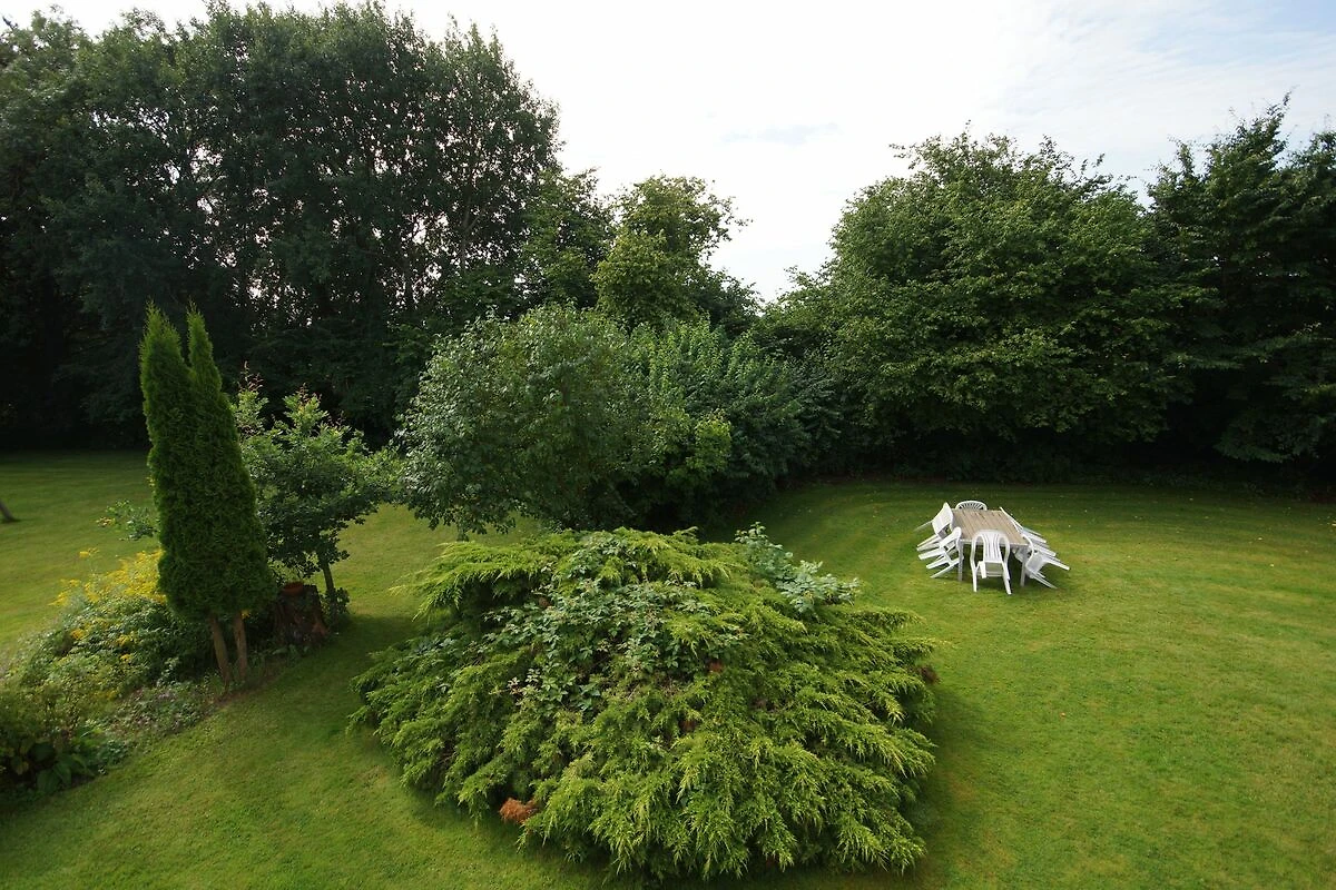 Die Einrichtung ist in einem klaren Stil gehalten, der durch antike Landhausmöbel akzentuiert wird. Die Räume sind hell, die Sonne begrüsst einen zum Frühstück und schaut zum Abend nochmal in die Schlafräume. Zudem bietet die Wohnung einen schönen, weiten Blick in den grossen Garten.