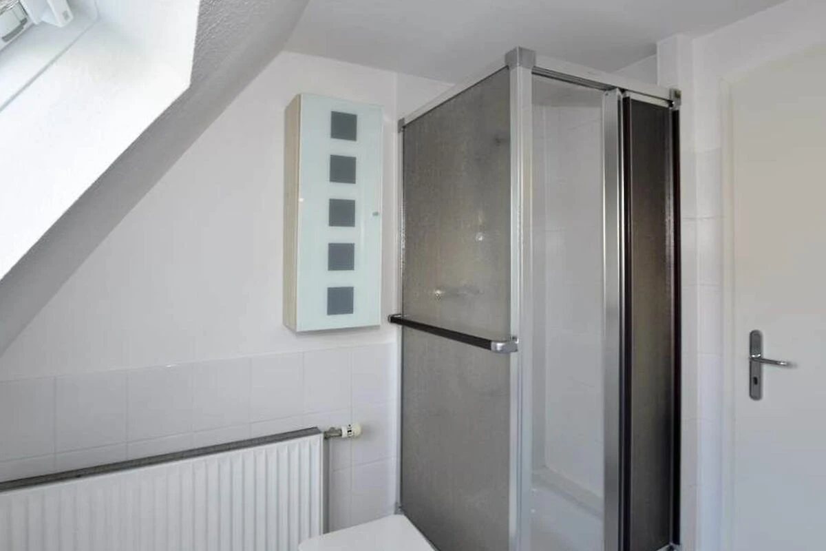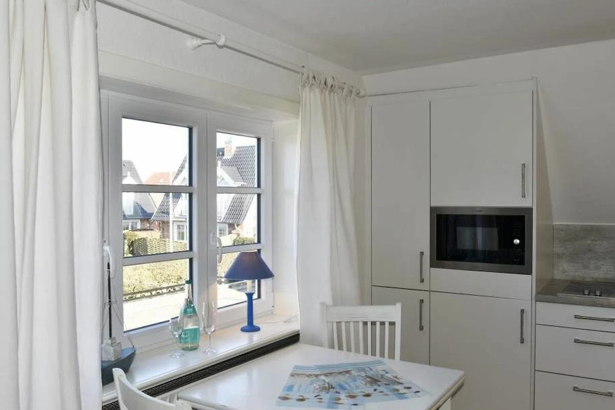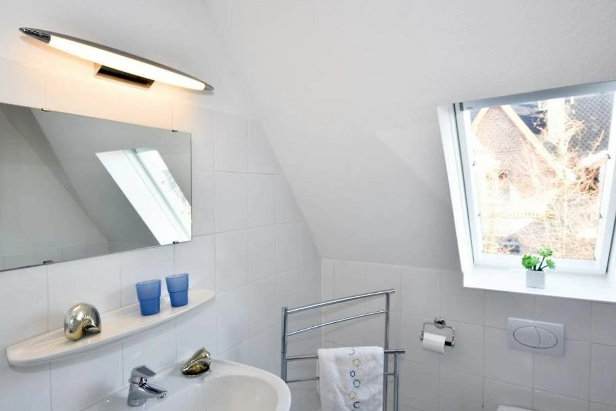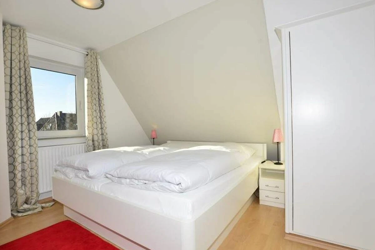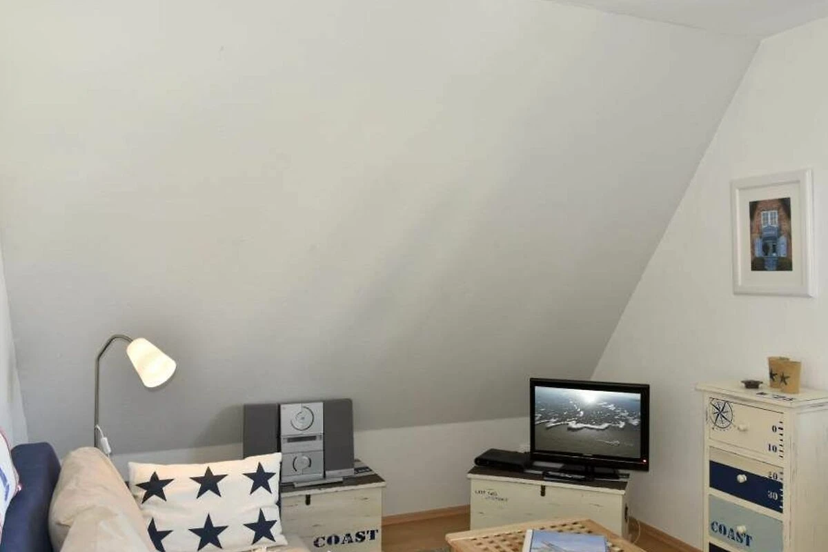 2-Zimmer-Nichtraucher-Ferienwohnung (ca. 45 m²) in der 1. Etage für max. 2 Personen mit eigenem Gartenanteil und Strandkorb (von Ostern bis Oktober) in Ostlage (Morgensonne, mit Terrassenmöbeln und Auflagen).