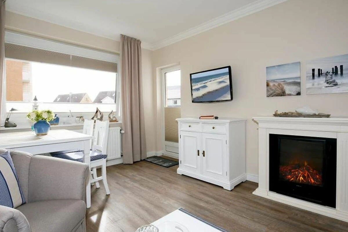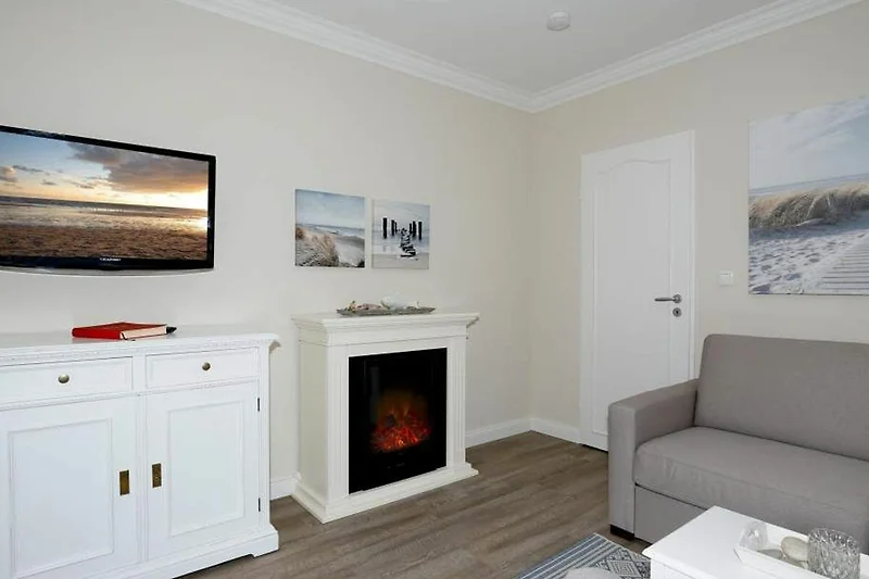 Diese charmante 2-Zimmer-Nichtraucher-Ferienwohnung mit ca. 37 qm Wohnfläche im Hochparterre auf der Süd-Ostseite ist ideal für maximal 2 Personen. Im hellen Wohnzimmer finden Sie eine komfortable Schlafcouch (1,40 x 1,80 m), einen gemütlichen Sessel mit passendem Fusshocker sowie einen separaten Essplatz. Für Ihre Unterhaltung sorgen ein Radio/CD-Player, Kabel-TV und ein stimmungsvoller Elektrokamin. Der angrenzende Süd-Ostbalkon lädt dazu ein, die frische Seeluft zu geniessen.