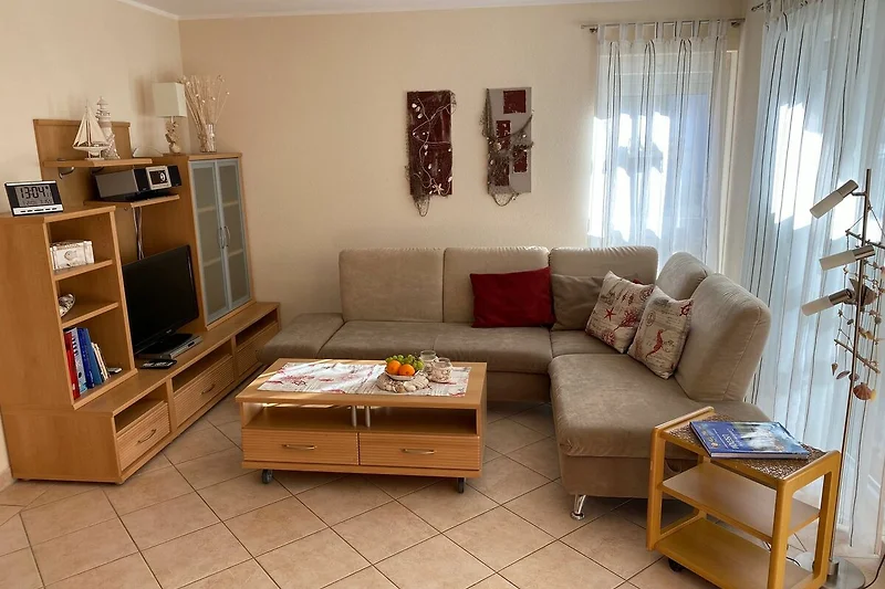 Wohn-, Esszimmer, Küche, Bad, Schlafzimmer mit Doppelbett, kl. Zimmer mit ausziehbarer Schlafcouch