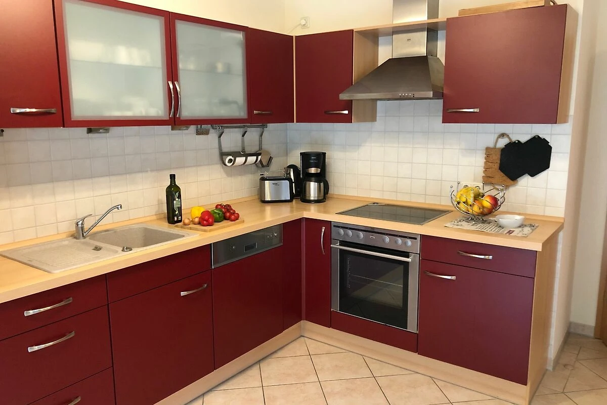 Herd, Backofen, Kühlschrank, mit Tiefkühlfach, Geschirrspülmaschine, Mikrowelle, Kaffeemaschine, Toaster, Wasserkocher