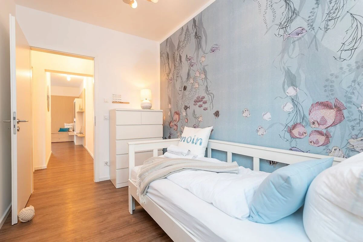 Die 3-Raum-Ferienwohnung Verdandi 10 im Erdgeschoss bietet mit ihrer modernen und zugleich gemütlichen Einrichtung Platz für bis zu 4 Personen. Geniessen Sie den Komfort von zwei Schlafzimmern eines mit einem komfortablen Doppelbett und das andere mit einem Einzelbett, das bei Bedarf um eine zusätzliche Aufbettung erweitert werden kann. Für die kleinsten Gäste kann auf Wunsch ein Kinderreisebett bereitgestellt werden.