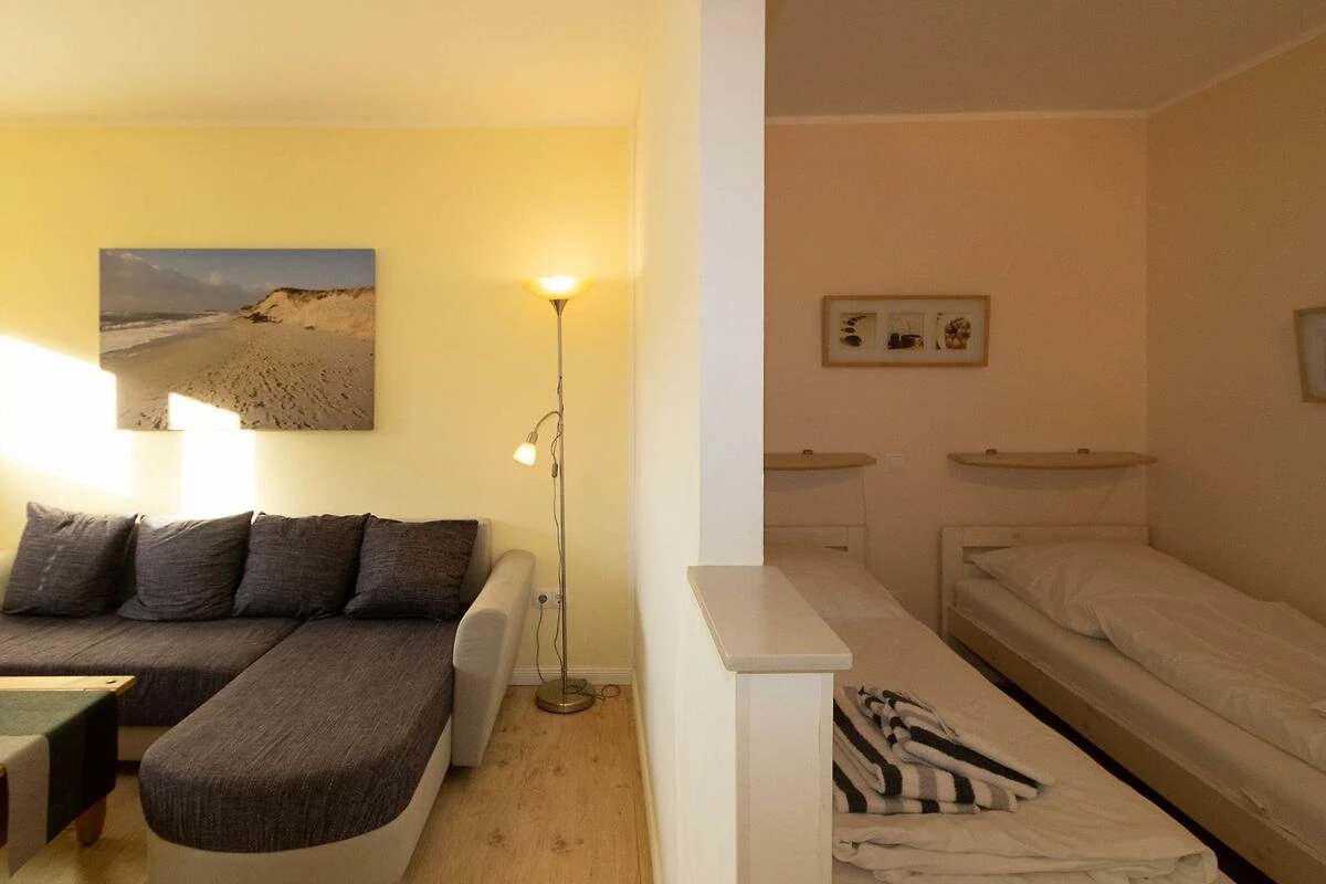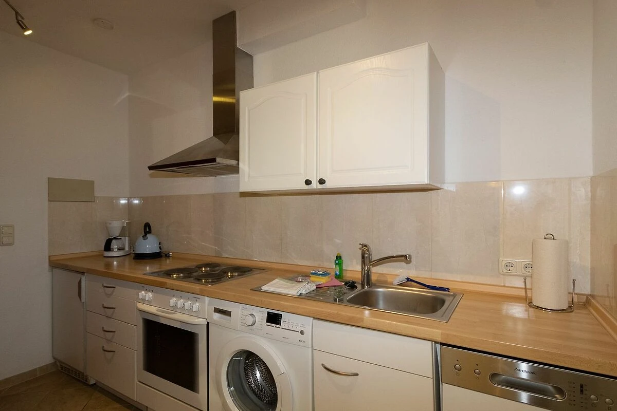 Gemütlich und modern eingerichtetes Appartement. Die Wohnung hat einen Wohnraum (mit Sitz- und Essecke, Sat-Fernsehen und Radio mit CD-Player). Der Schlafraum ist abgeteilt vom Wohnraum und hat zwei Einzelbetten sowie einen Kleiderschrank. Die Küche ist separat und komplett ausgestattet mit Waschmaschine, Geschirrspüler , 4 Plattenherd, Backofen, Kaffeemaschine usw. Das Bad ist mit einer Dusche ausgestattet.