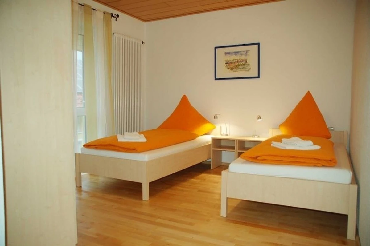 Die Ferienwohnung im 1. Obergeschoss mit einer Grundfläche von 80 m² verfügt über einen grosszügigen Wohnraum sowie eine moderne Küchenzeile mit Spülmaschine und Kühl-/Gefrierkombination. Die Wohnung bietet zwei Schlafräume sowie ein Badezimmer mit Badewanne, Dusche und WC. Zur Ausstattung gehören Sat-TV, WLAN sowie eine geregelte Wohnraumlüftung. Die Einrichtung ist im modernen Landhausstil gehalten und sorgt für eine angenehme Wohlfühlatmosphäre. An die Wohnung schliesst eine Terrasse an, die mit Terrassenmöbeln ausgestattet ist. Die Wohnung ist für bis 4 Erwachsene sowie 2 Kinder bis 3 Jahre (im Kinderbett).