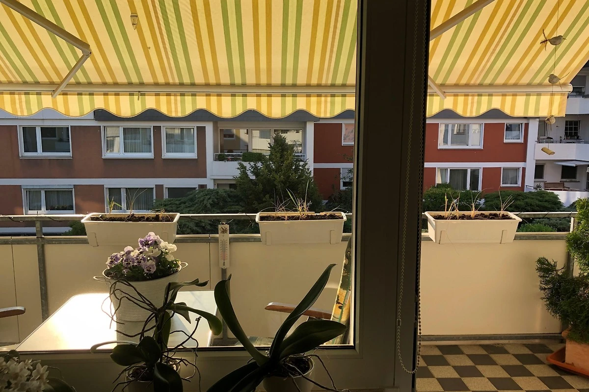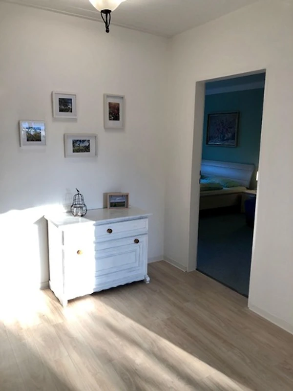 Die helle freundliche Ferienwohnung befindet sich in einem ruhigen Mehrfamilienhaus in der ersten Etage und verfügt über zwei Schlafzimmer. Ein grosses Schlafzimmer mit einem Doppelbett und einem Einzelbett (Ausziehsessel mit Matratze) sowie zwei grossen Kleiderschränken und ein kleineres Schlafzimmer mit einem Einzelbett und einem Schreibtisch.