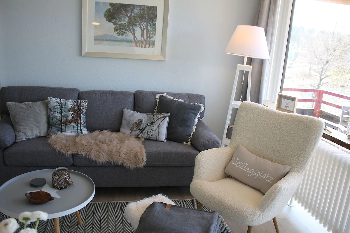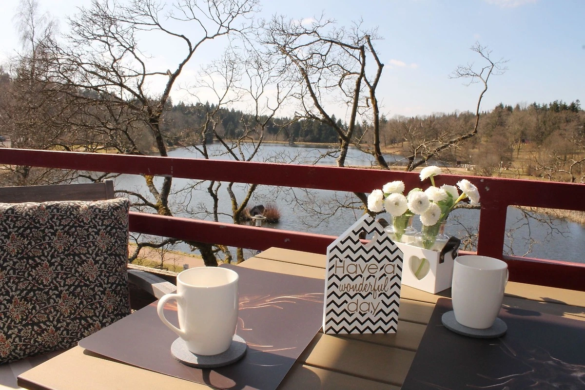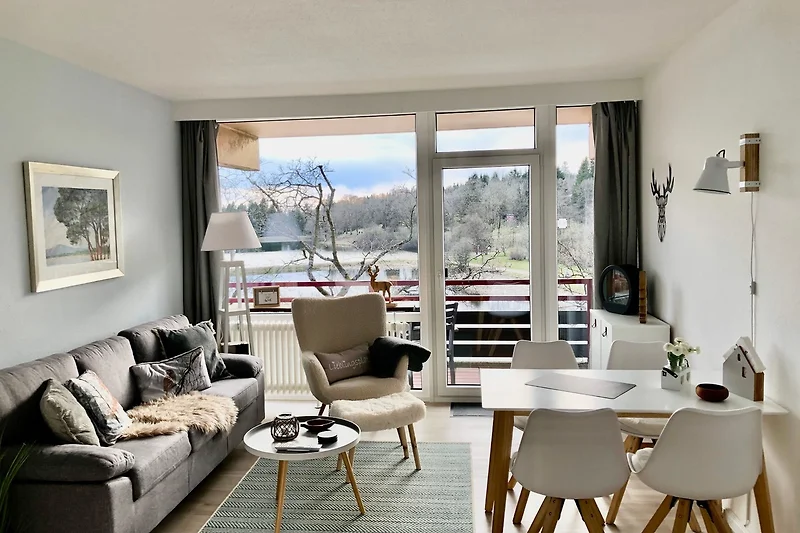 Wir laden Sie herzlich ein in unser kleines Apartment mit Balkon und Panoramablick auf den See. Sie finden hier alles was Sie für einen entspannten Urlaub benötigen, einschliesslich bezogenen Betten und Handtüchern. Der Balkon, mit zwei Stühlen und einem Tisch, hat schon früh Sonne und am Abend geht diese hinter den Tannen unter. Das grosse Bett hat eine Liegefläche von 180x200 cm. Das Sofa und ein gemütlicher Sessel laden zum Relaxen ein. Die Küche hat ein zweier Ceranfeld, einen kleinen Geschirrspüler, einen Kühlschrank, einen Gastrobackofen und alles was man so in einer Küche benötigt.