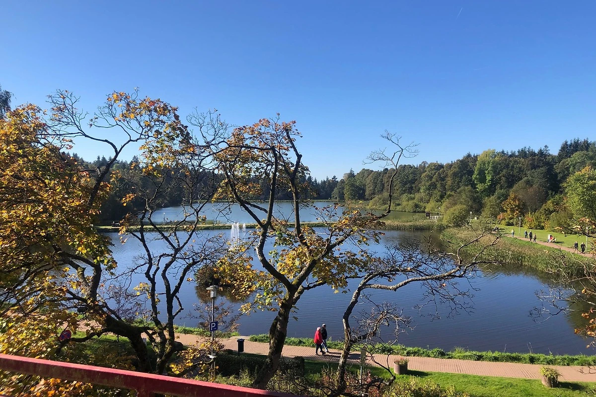 Geniessen Sie vom Balkon aus den tollen Panoramablick auf den Kranichsee und den Kurpark. Parkplätze finden Sie hinter dem Haus oder auf der anderen Strassenseite. Im Keller steht ein Fahrrad/Ski/Schlittenraum zur Verfügung.