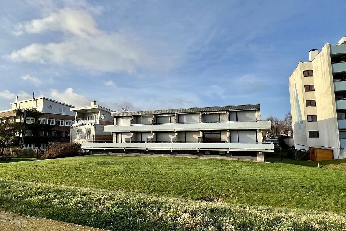 Die Fewo "Nordhues" befindet sich im Haus Fischerstrand in der 2. Etage, direkt hinterm Deich in unmittelbarer Strandnähe.