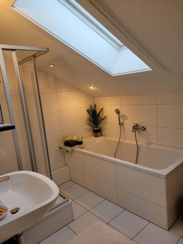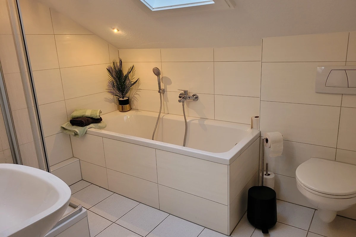 Die Ferienwohnung "Mei Auszeit" befindet sich mitten im grünen Herzen Deutschlands und bietet einen schönen Ausblick auf den Hausberg von Zella-Mehlis. Die Ferienwohnung ist eine charmante 50 qm grosse Altbauwohnung im Dachgeschoss und verfügt über einen Wohnraum mit Schlafsofa, ein Schlafzimmer mit Doppelbett, eine voll ausgestattete Küche mit Essbereich und ein Bad mit Dusche und Badewanne.