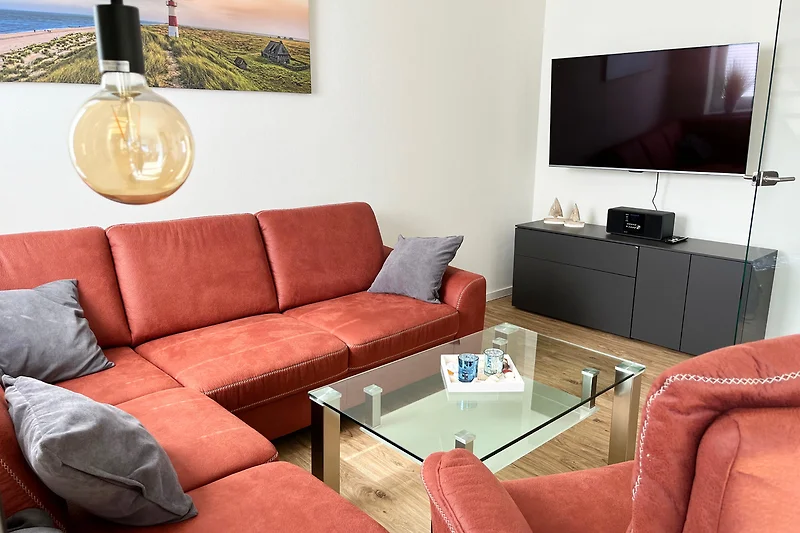 In den 3 Schlafzimmern, welche alle mit einem Boxspringbett ausgestattet sind, finden bis zu 6 Erwachsene gemütlich Platz. In 2 Schlafzimmern finden Sie 2 Härtegrade der Matratzen vor. Ein Reisebett für kleine Gäste ist im Haus vorhanden. In 2 von den 3 Schlafzimmern ist ein Smart TV vorhanden, so wie im Wohnzimmer.