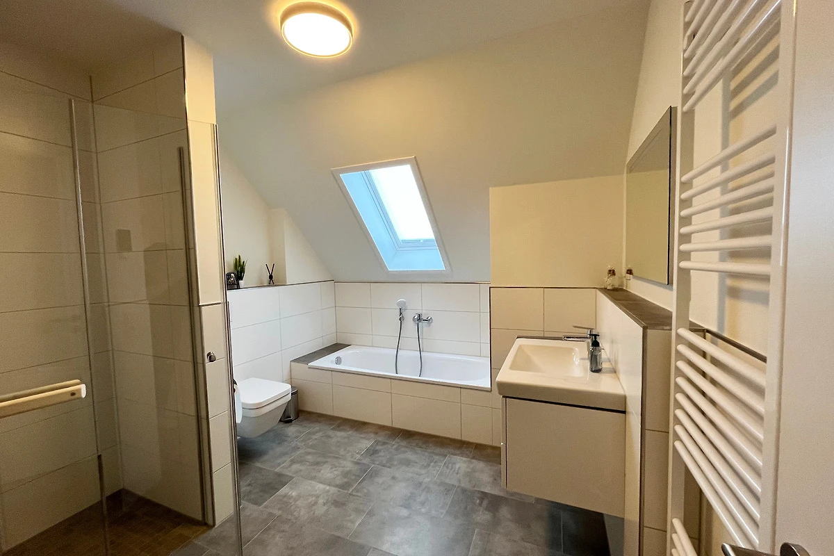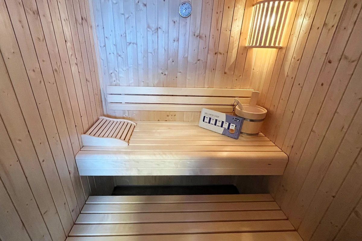 Im eigenen Garten finden wir neben einer überdachten Terrasse mit Sonnenschutz einen Grill vor. Für die kalte Jahreszeit lädt der Ofen für gemütliche Stunden auf dem Sofa ein oder eine im Bad integrierte Sauna.