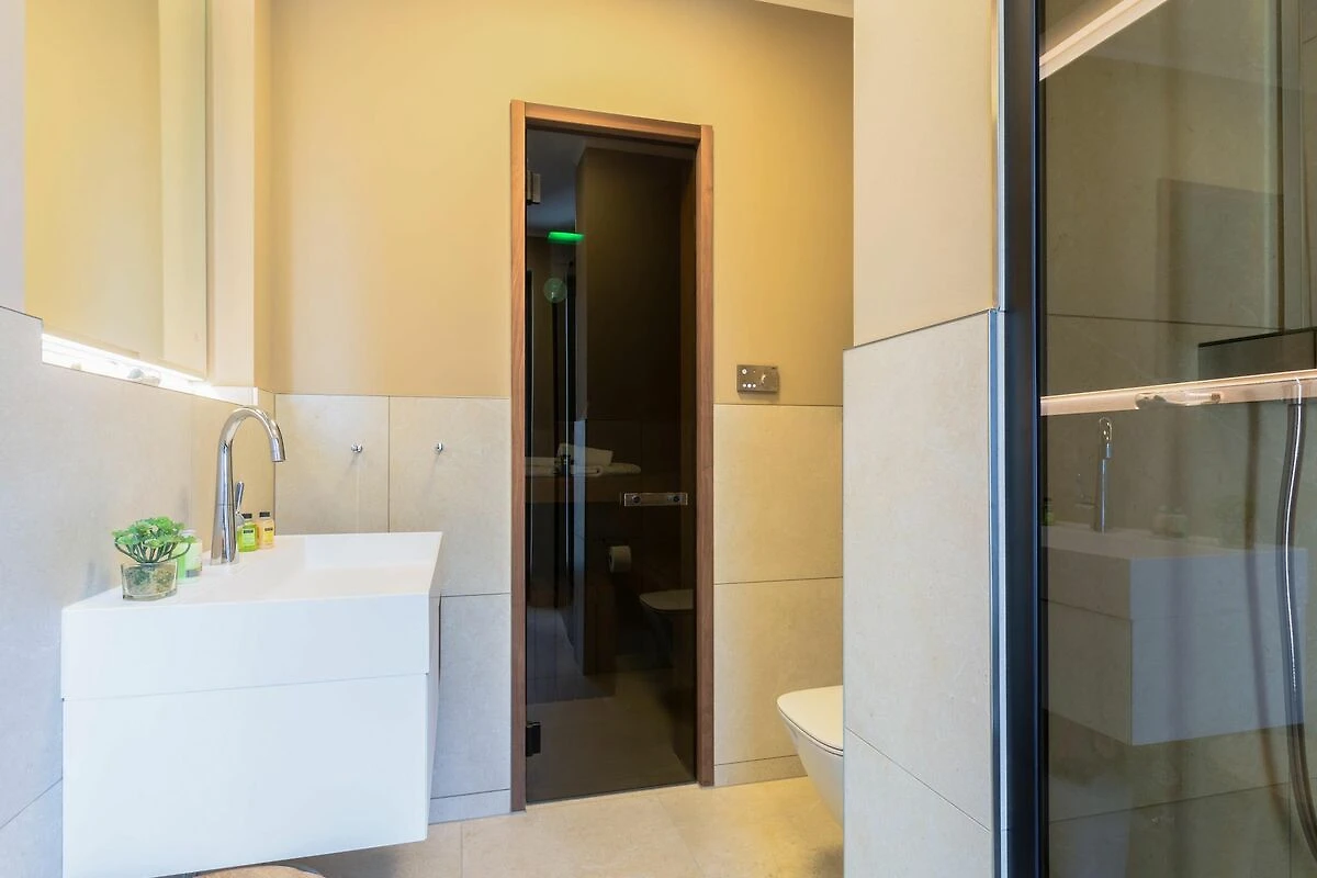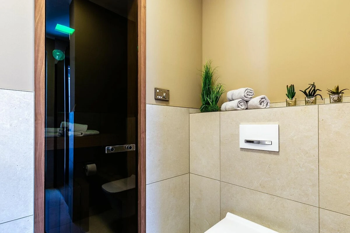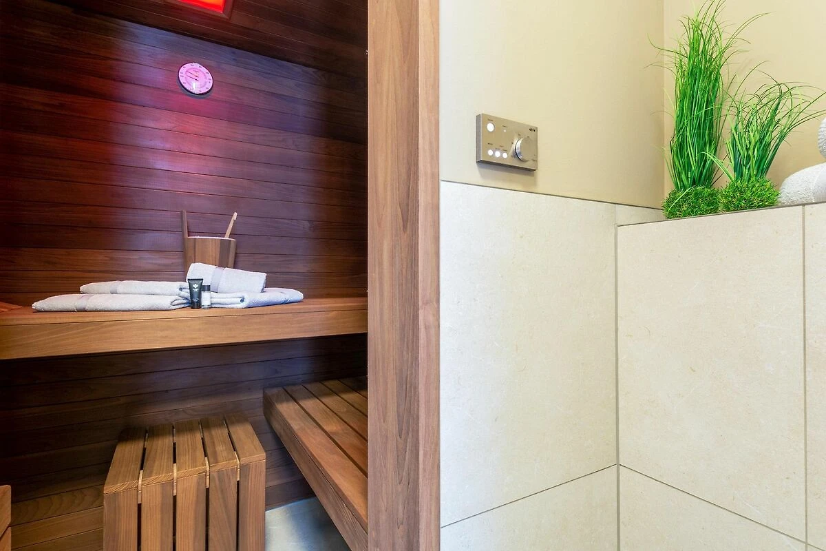 Im Badezimmer der Wohnung mit Dusche, befindet sich eine Sauna zur alleinigen Nutzung für unsere Gäste.