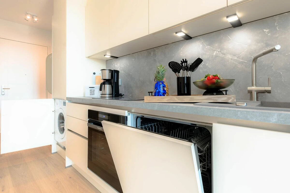 Geschirrspüler, Toaster, Kaffeemaschine, Wasserkocher und allen notwendigen Küchenutensilien