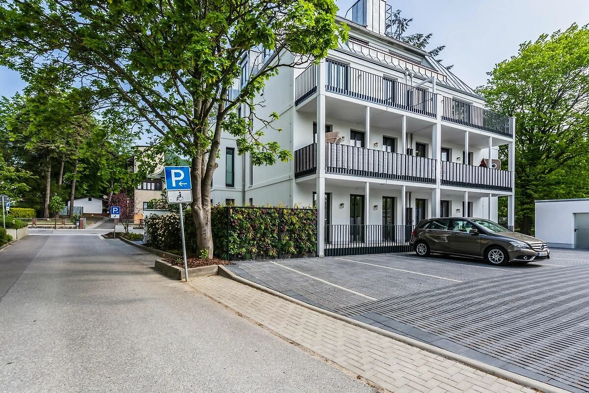 Auf dem Parkplatz hinter der Villa gibt es für diese Wohnung einen gekennzeichneten Parkplatz.