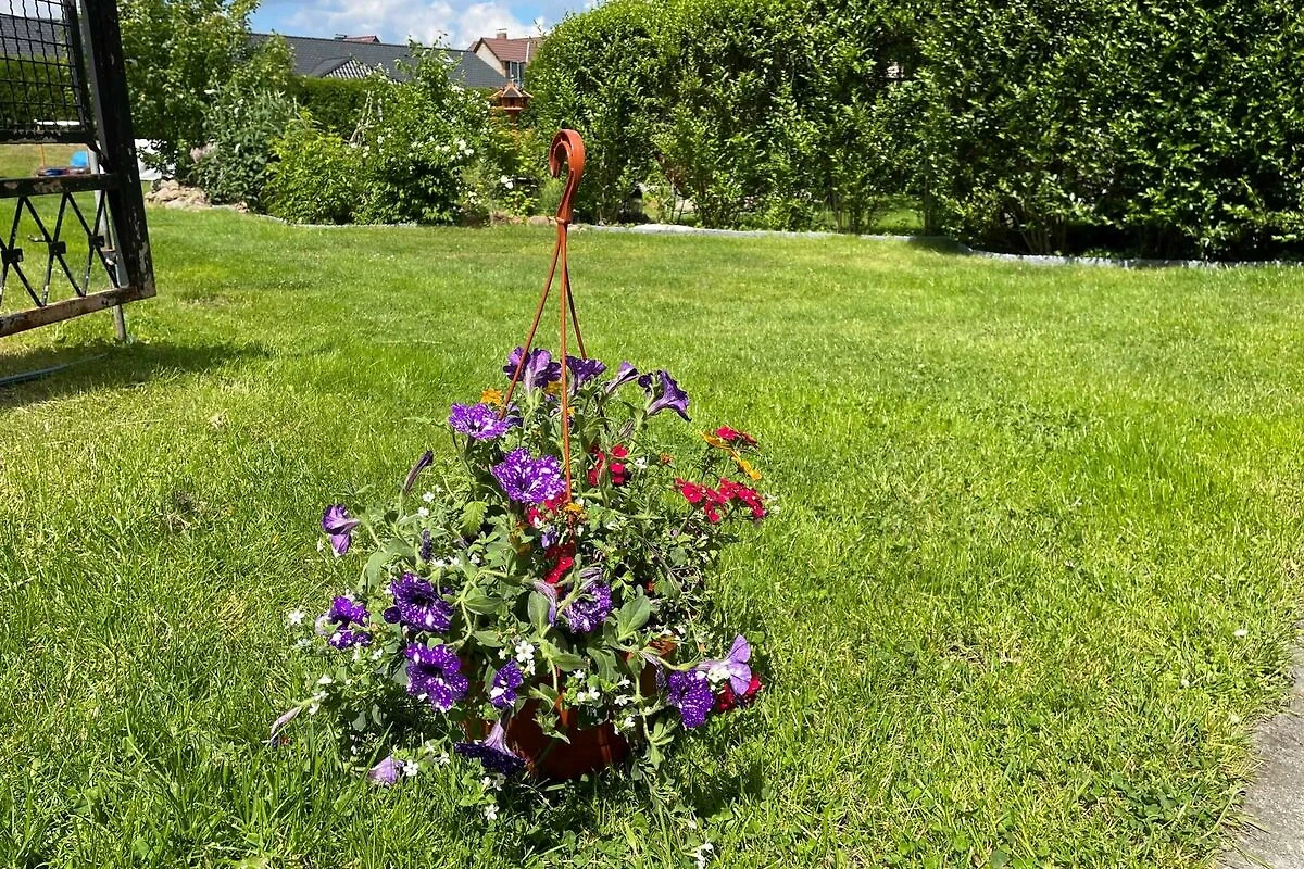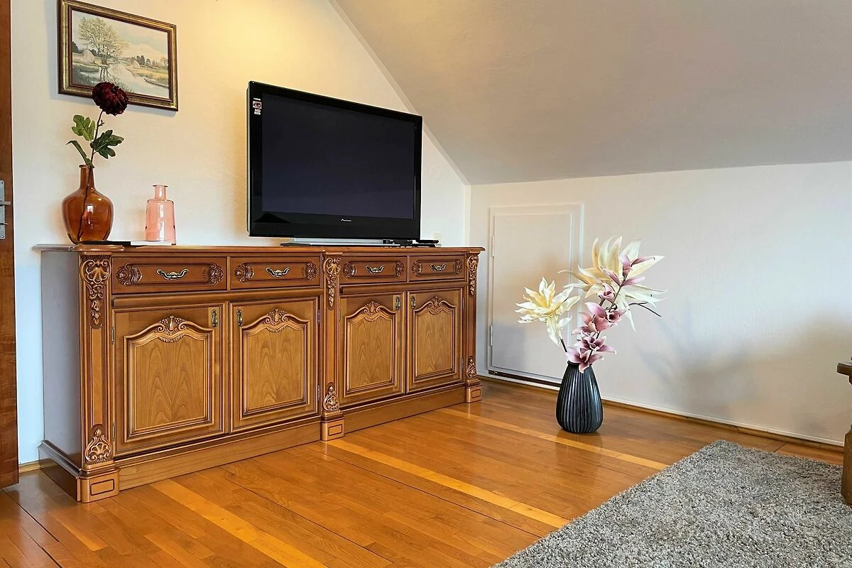 Über den Seiteneingang Veranda gelangen Sie zum Hauseingang. Sie gehen rechts die Treppe hoch zu Ihrer Ferienwohnung. Sie befindet sich im Obergeschoss. Der kleine Flur ist der Zugang zu allen Räumen. Somit ist jeder Wohnbereich separat. Im grosszügigen Wohn- und Schlafzimmer haben Sie viel Platz und Ruhe. Jeder findet ein Plätzchen zum Ausruhen auf dem Sofa und können Fernsehen auf dem Flachbild-TV. Im Schlafbereich befindet sich ein Doppelbett (1,80 m x 2,00 m ). Im Kinderzimmer dürfen sich die kleinen Mitreisenden sich so richtig wohl fühlen. Das Zimmer bietet viel Platz, mit Spielsachen, Büchern, einer Couch, Flachbild-TV und zahlreiche Kinderbücher. Die Küche ist vollkommen ausgestattet mit allen Utensilien und Geräten, die Sie zum Kochen und Essen zubereiten brauchen. In der Sitzecke können Sie alle Mahlzeiten einnehmen. Das Bad bietet Ihnen eine Badewanne, Dusche und WC.