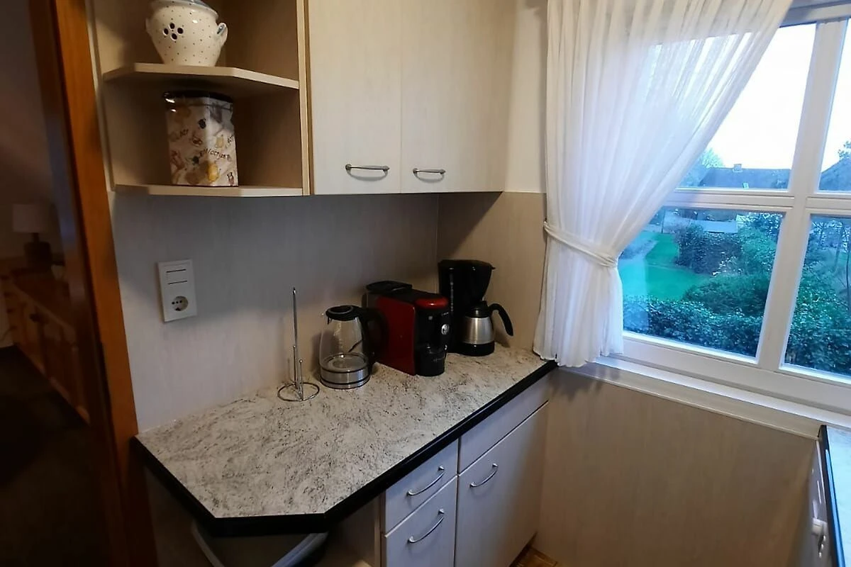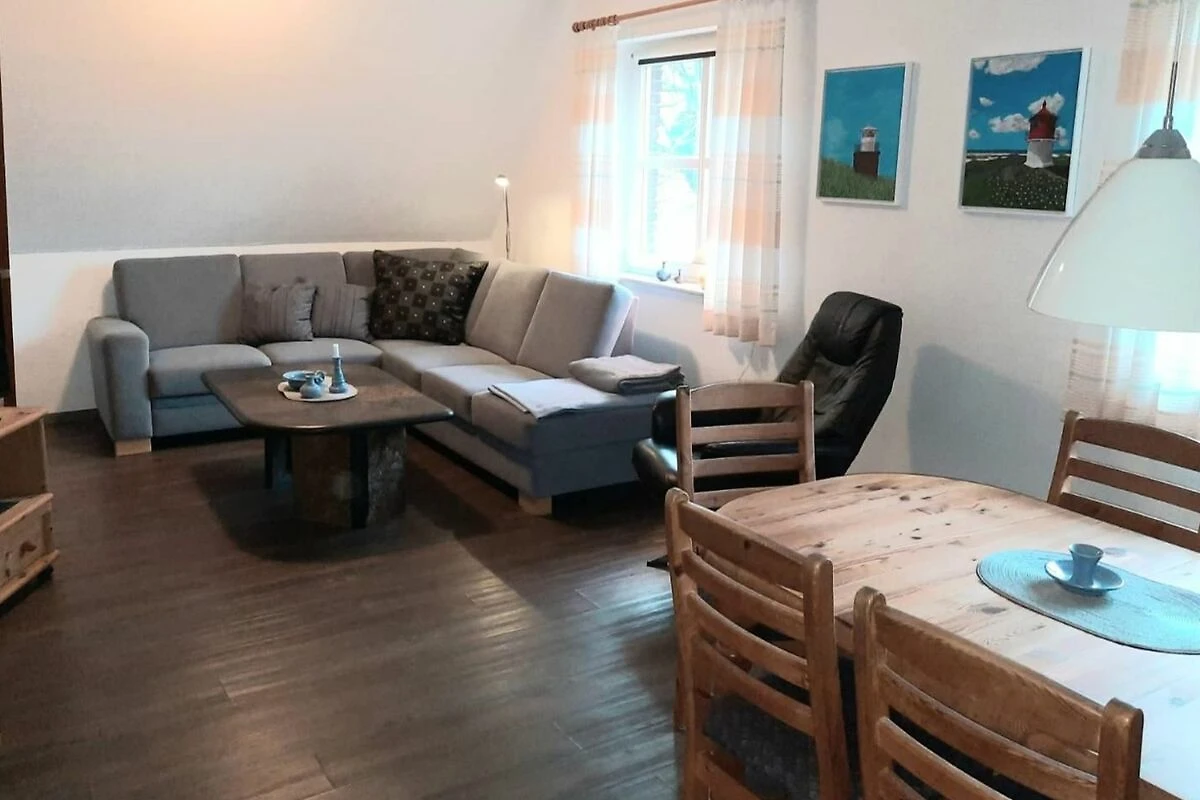 Einladende, gemütliche Obergeschoss Wohnung für 4 Pers.,Mit eigener Terrasse im Garten, 2 Schlafzimmer, Wlan, sep. Schlafkajüte Mit abgeschlossene Küche, Wohnzimmer mit Essbereich, Badezimmer mit Dusche.Schöner Garten, Gartenmöbeln und Grillplatz.Terrasse mit Grillplatz und Gartenmöbel.