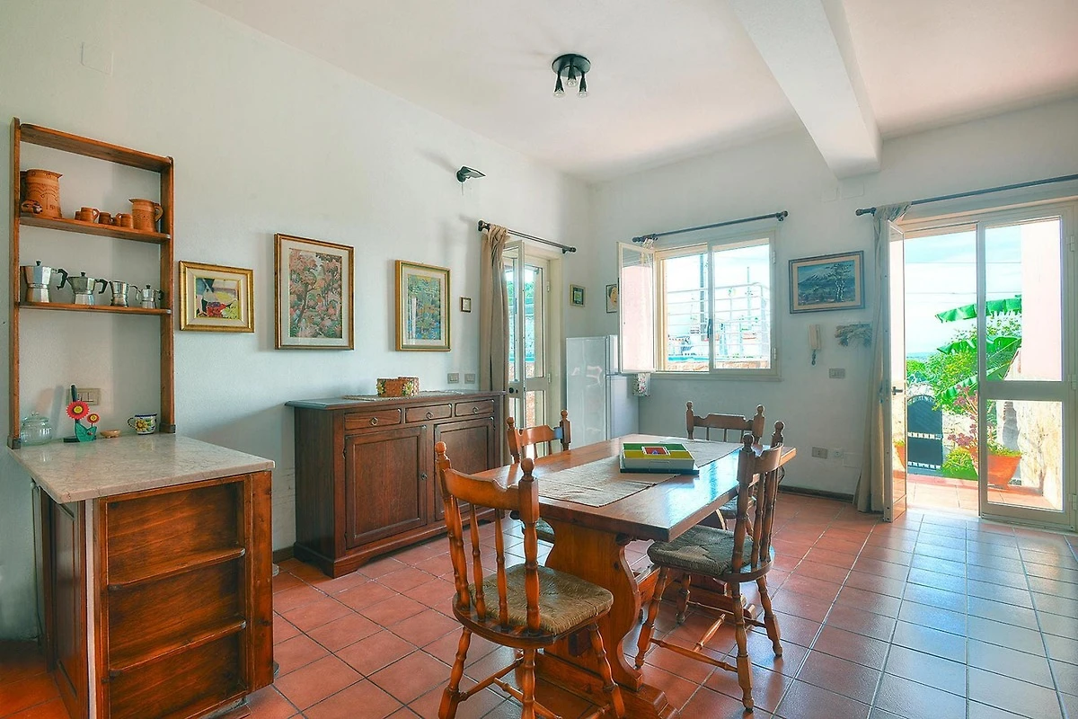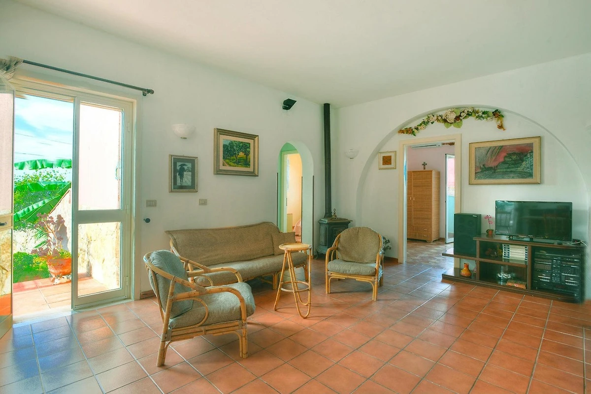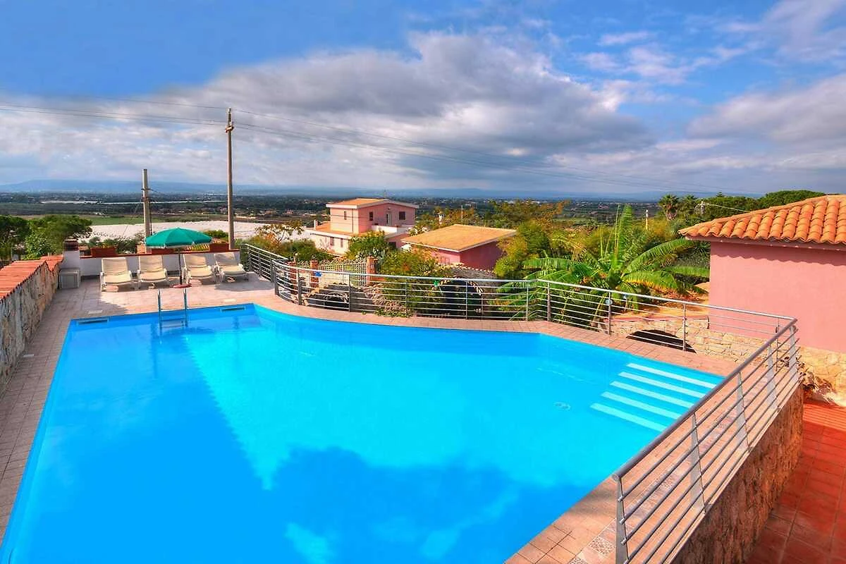 Mediterran gestaltetes Ferienhaus mit viel Platz auf 2 Etagen liegt ungefährt 700 m von der Felsenküste entfernt. Ein privater Außenpool sorgt für Erfrischung im gepflegten Garten. Von der gemütlichen Terrasse aus haben Sie einen herrlichen Blick über die Umgebung mit ihren vielen Palmen bis hin zum Ionischen Meer. Eine regelmäßige Busverbindung bringt Sie ohne großen Aufwand nach Syrakus, eine der historisch bedeutungsvollsten Städte auf Sizilien. Syrakus ist nur 10 km von Terrauzza entfernt. Das römische Amphitheater und auch der archäologische Park von Neapoli sind äußerst sehenswert. Wer nach sich nach so viel Kultur erfrischen möchte, stattet dem weißen Sandstrand von Fontane Bianche einen Besuch ab; dieser liegt nur 9 Kilometer südlich von Syrakus oder dem Sandstrand von Lido Arenella; dieser liegt nur 5,5 km entfernt.