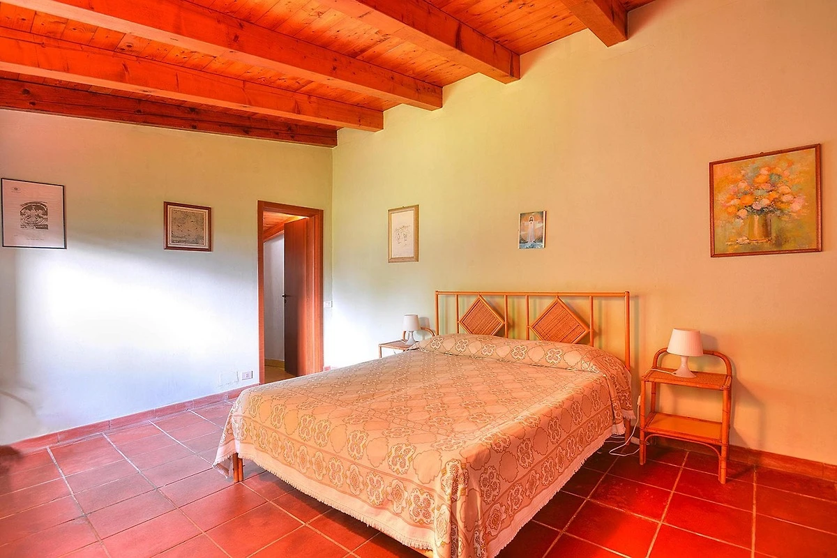 Wohnzimmer(TV(Satellit, Deutsch Fernsehsender), Sitzecke, Heizung(Holz)), offene Küche(Esstisch, Kochplatte(5 Kochplatten, Gas), Backofen, Spülmaschine, Kühl-/Gefrierkombination, Klimaanlage), Schlafzimmer(Doppelbett, Klimaanlage), Schlafzimmer(Doppelbett, Klimaanlage), Badezimmer(Dusche, Toilette, Bidet), Veranda, Esstisch, Grill, Dusche(im Garten), Waschmaschine, Klimaanlage, Terrasse, Garten, Gartenmöbel, Parkplatz, Klimaanlage (kostenpflichtig), Pool(alleinige Nutzung, im Garten, geöffnet von Mai bis einschließlich Sep), Babybett (kostenpflichtig)