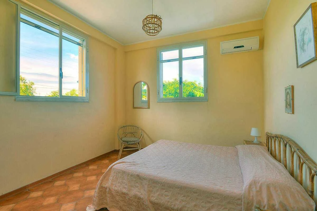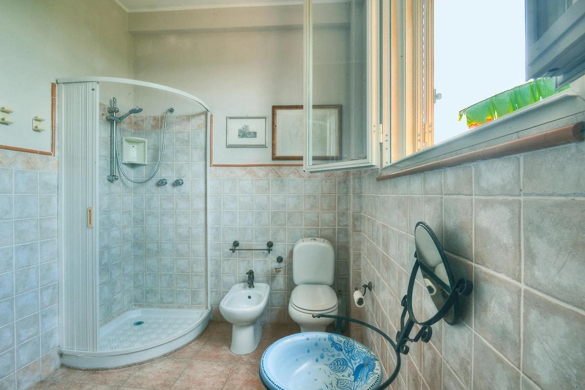 In der 1. Etage: (Schlafzimmer mit Badezimmer, Doppelbett, Dusche, Toilette, Bidet, Klimaanlage)