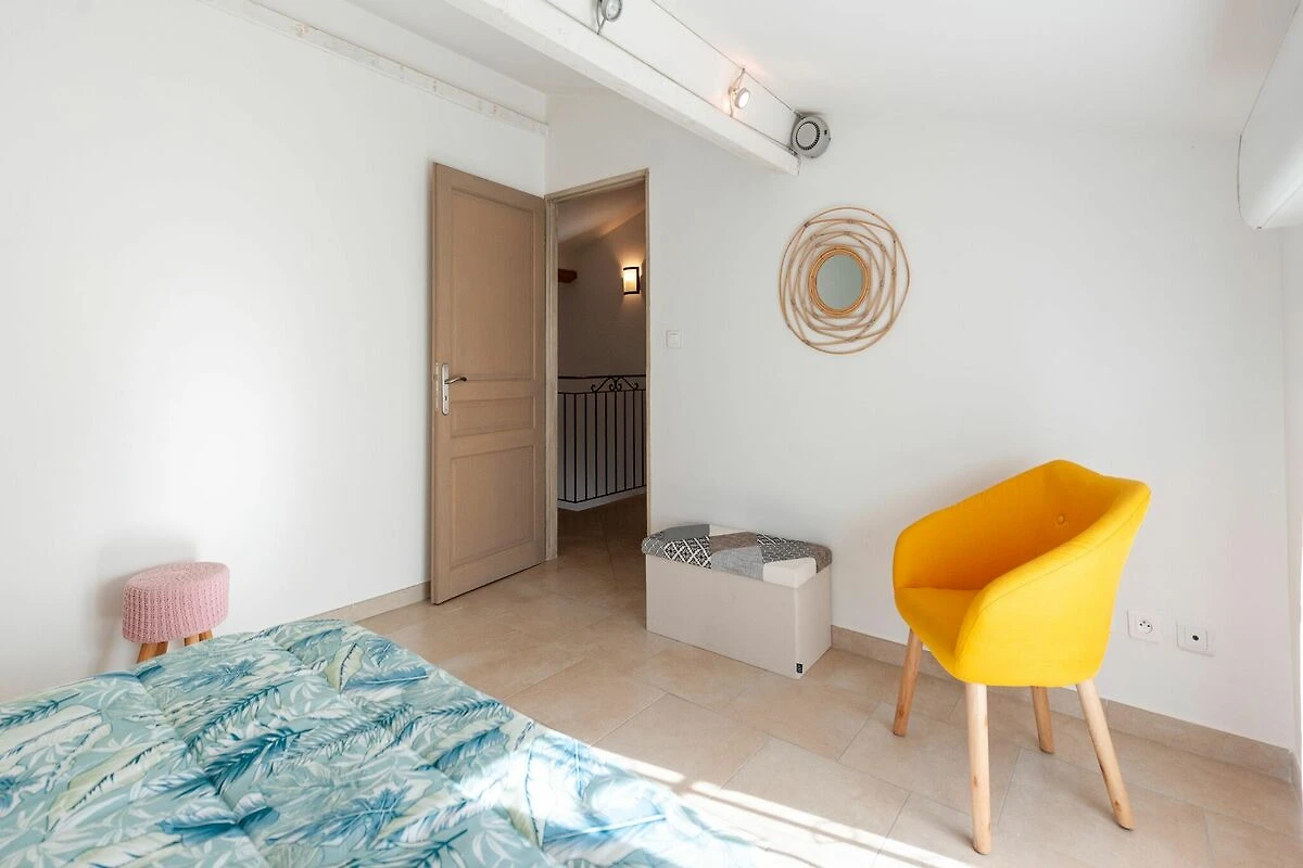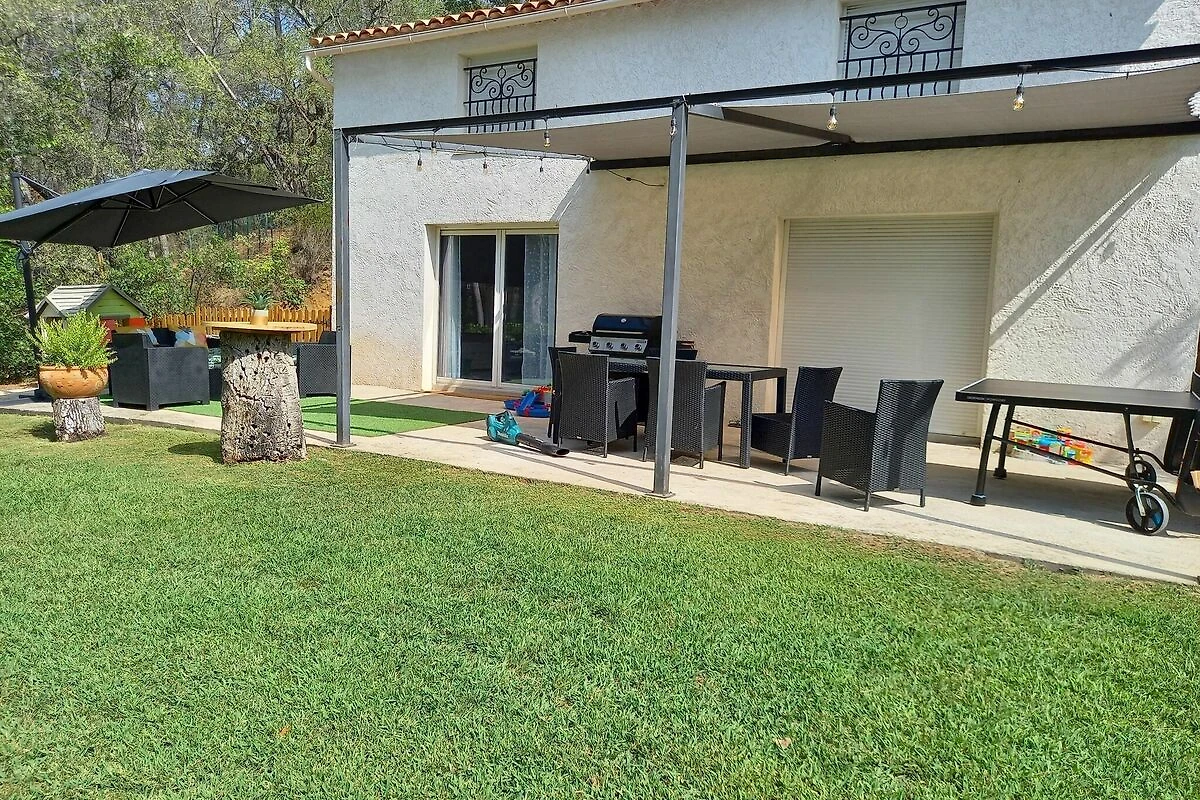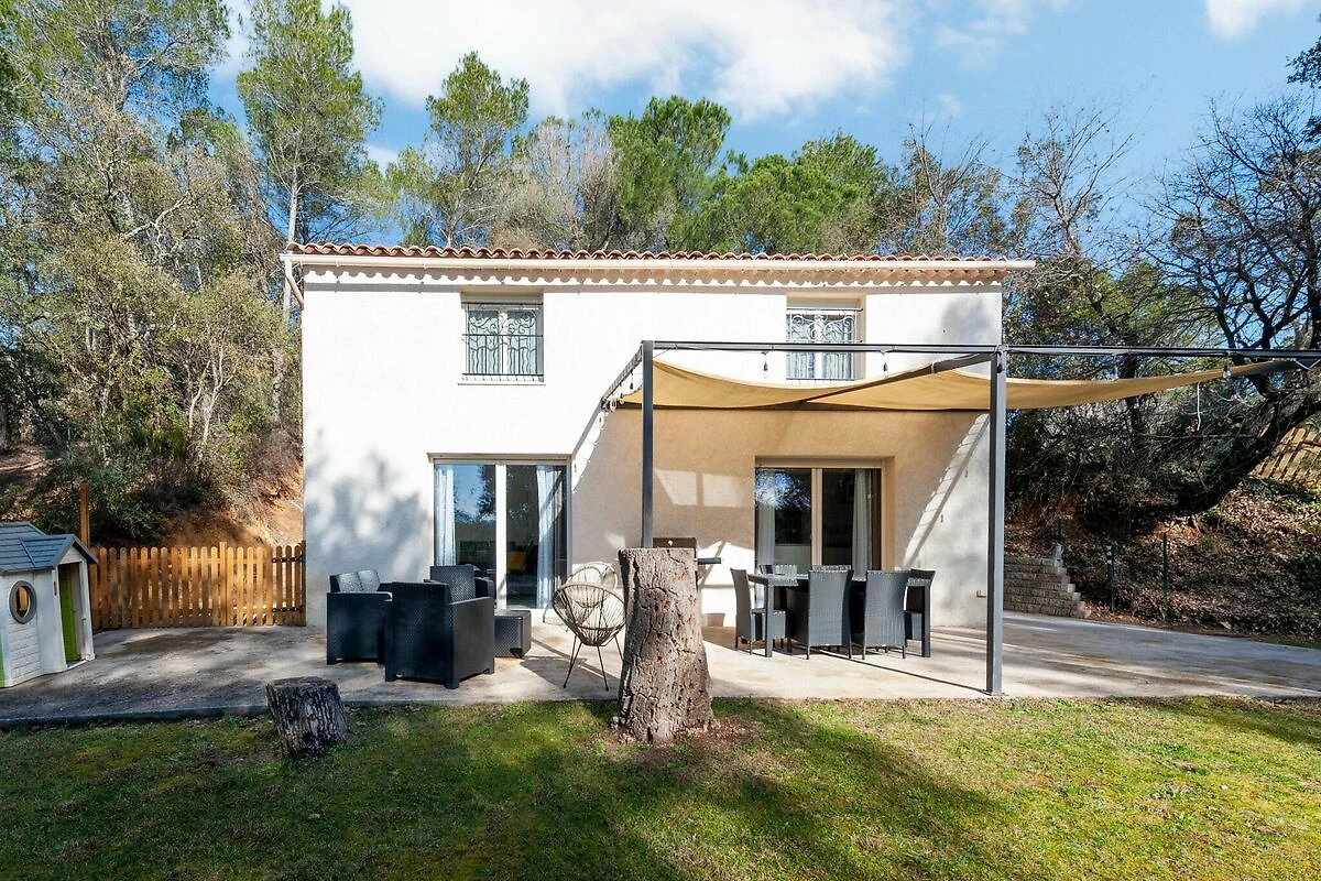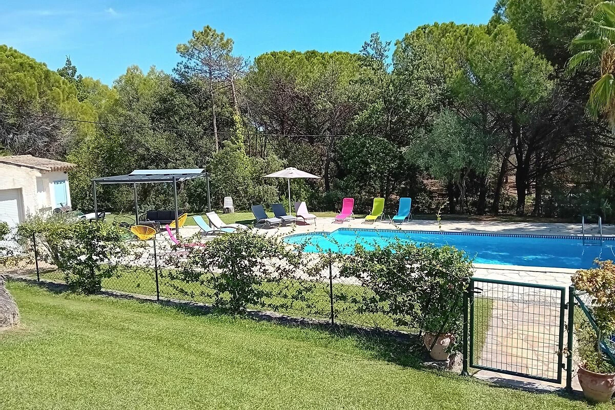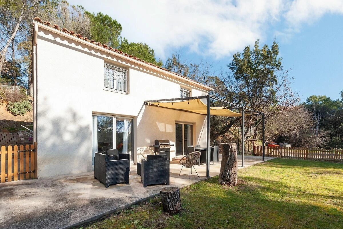 Am Ende einer Sackgasse liegt dieses von Wäldern umgebene Ferienhaus, das im Jahr 2022 komplett renoviert wurde. Es befindet sich auf dem gleichen Grundstück wie das Haus der Eigentümer und bietet seinen Gästen viel Privatsphäre. Ideal für Familien Der umzäunte Swimmingpool mit Kinderbecken (30 cm tief) wird mit den Eigentümern geteilt und befindet sich etwa hundert Meter vom Haus entfernt. Das Anwesen liegt in der Nähe vieler Zentren, das nächste ist La Bouverie in 1,5 km Entfernung. Hier finden Sie schöne Geschäfte und Restaurants, um abends einen angenehmen Abend zu verbringen. Das Zentrum des berühmtesten Fréjus ist 8 km von der Unterkunft entfernt, und ein Tag voller Wasserspaß im nahe gelegenen Wasserpark ist ebenfalls möglich (1,5 km). Das Interieur ist elegant und das gesamte Obergeschoss ist klimatisiert; für eine angenehme Temperatur an heißen Sommertagen.Das Hauptschlafzimmer verfügt über ein eigenes Duschbad und die anderen Schlafzimmer teilen sich ein Badezimmer. Es gibt ein großes Schlafsofa, das bequem Platz für 2 Kinder bietet. Der Flughafen Nizza ist 65 km entfernt.