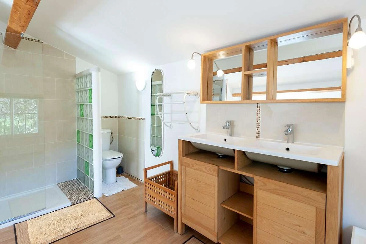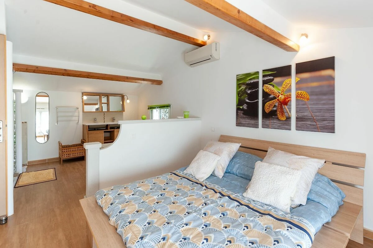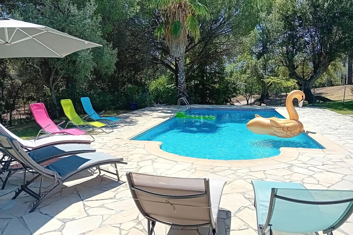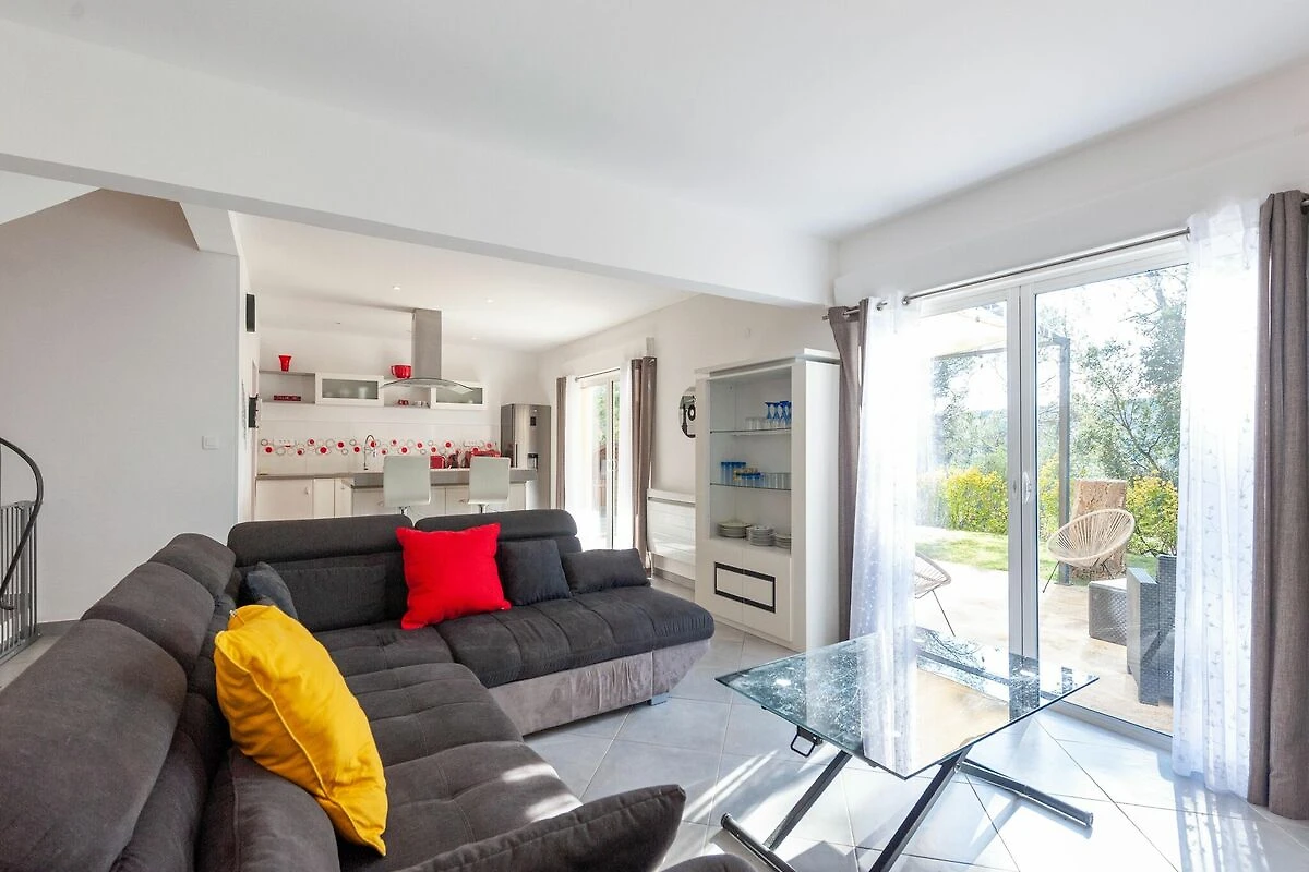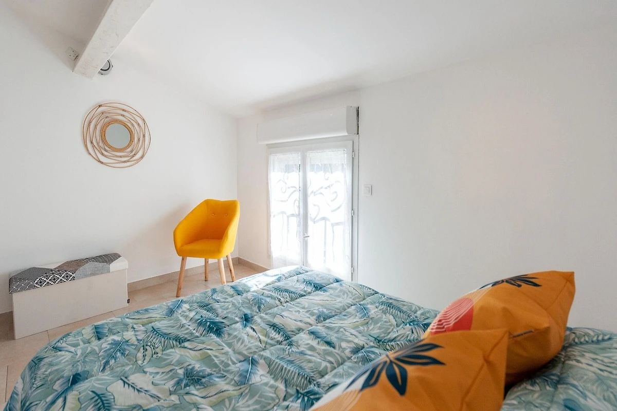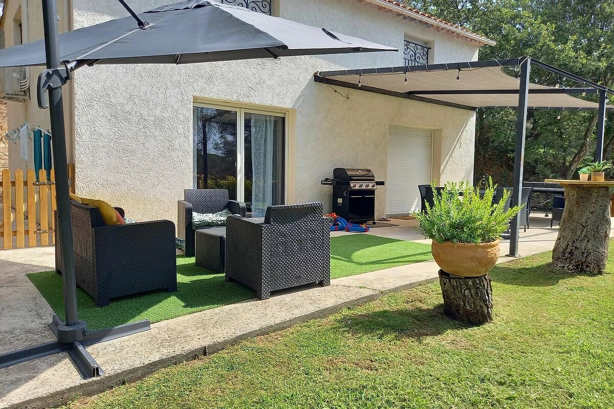 Am Ende einer Sackgasse liegt dieses von Wäldern umgebene Ferienhaus, das im Jahr 2022 komplett renoviert wurde. Es befindet sich auf dem gleichen Grundstück wie das Haus der Eigentümer und bietet seinen Gästen viel Privatsphäre. Ideal für Familien Der umzäunte Swimmingpool mit Kinderbecken (30 cm tief) wird mit den Eigentümern geteilt und befindet sich etwa hundert Meter vom Haus entfernt. Das Anwesen liegt in der Nähe vieler Zentren, das nächste ist La Bouverie in 1,5 km Entfernung. Hier finden Sie schöne Geschäfte und Restaurants, um abends einen angenehmen Abend zu verbringen. Das Zentrum des berühmtesten Fréjus ist 8 km von der Unterkunft entfernt, und ein Tag voller Wasserspaß im nahe gelegenen Wasserpark ist ebenfalls möglich (1,5 km). Das Interieur ist elegant und das gesamte Obergeschoss ist klimatisiert; für eine angenehme Temperatur an heißen Sommertagen.Das Hauptschlafzimmer verfügt über ein eigenes Duschbad und die anderen Schlafzimmer teilen sich ein Badezimmer. Es gibt ein großes Schlafsofa, das bequem Platz für 2 Kinder bietet. Der Flughafen Nizza ist 65 km entfernt.