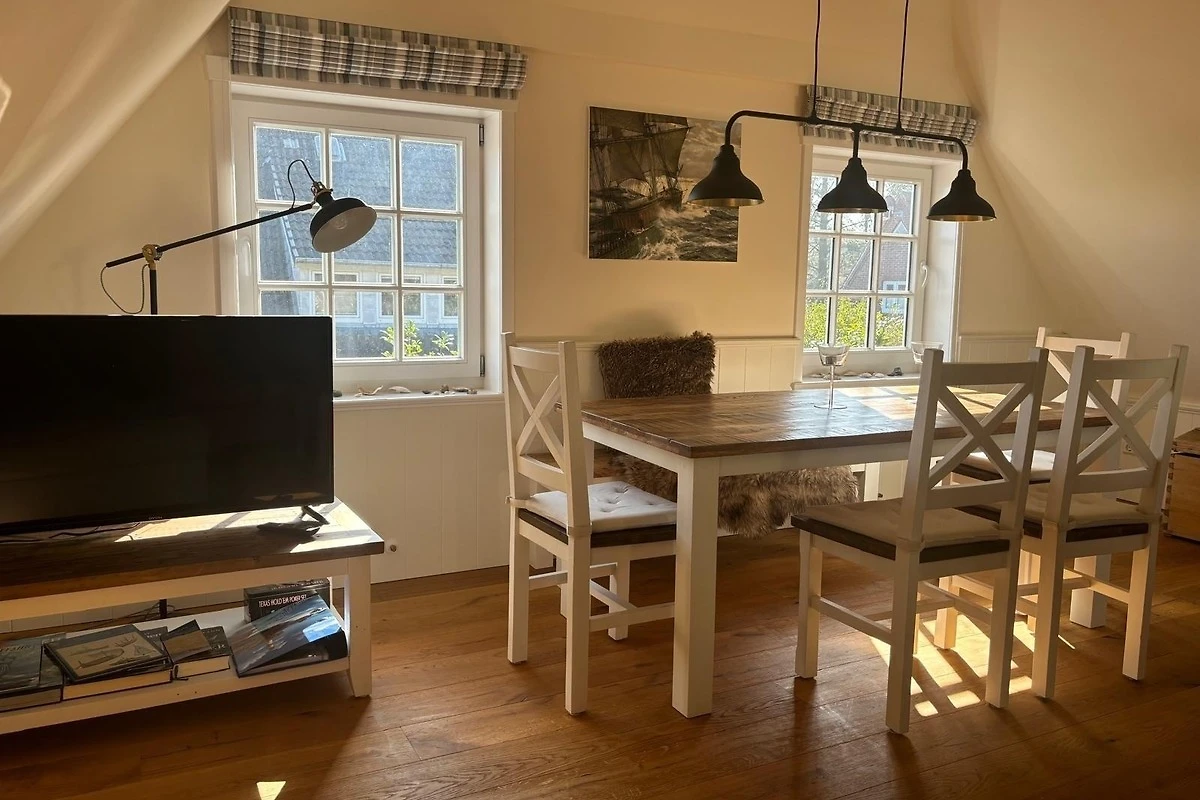 Die Ferienwohnung befindet sich in einer ruhigen Lage in Nebel, einem charmanten Ort auf der Insel Amrum. In der näheren Umgebung sind verschiedene Freizeitmöglichkeiten zu finden, die für Erholung und Abwechslung sorgen. Der Strand ist lediglich 2 Kilometer entfernt und lädt zu ausgedehnten Spaziergängen oder entspannenden Stunden am Wasser ein. Naturliebhaber können die umliegenden Dünenlandschaften erkunden, die in nur 3 Kilometern zu erreichen sind. Die Anreise gestaltet sich unkompliziert, sei es mit dem Auto oder öffentlichen Verkehrsmitteln, da Nebel gut angebunden ist. Lokale Cafés und Restaurants sind fussläufig erreichbar und bieten die Möglichkeit, die regionale Küche zu geniessen. Zudem sind Lebensmittelläden in einer Entfernung von 1,5 Kilometern vorhanden, was die Versorgung während des Aufenthalts erleichtert.