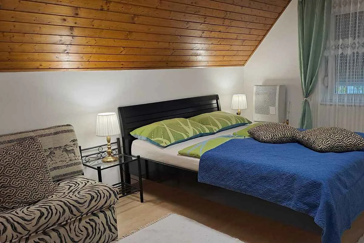 Die Ferienwohnung befindet sich in einem Einfamilienhaus, wurde im Jahr 2022 renoviert und ist modern eingerichtet. Das Grundstück liegt in einer FerienHaus-Siedlung. Auch wegen der ruhigen und sonnigen Hanglage ist das Domizil beliebt. Zur alleinigen Nutzung stehen zur Verfügung: Sonnenschirm, Sonnenliege, Kinderspielplatz, Sandkasten, Grillmöglichkeit, Gartenmöbel und Lagerfeuerplatz. Staubsauger, Babybadewanne, bitte bei der Buchung angeben, Segelbootverleih auf Anfrage gegen eine Gebühr.