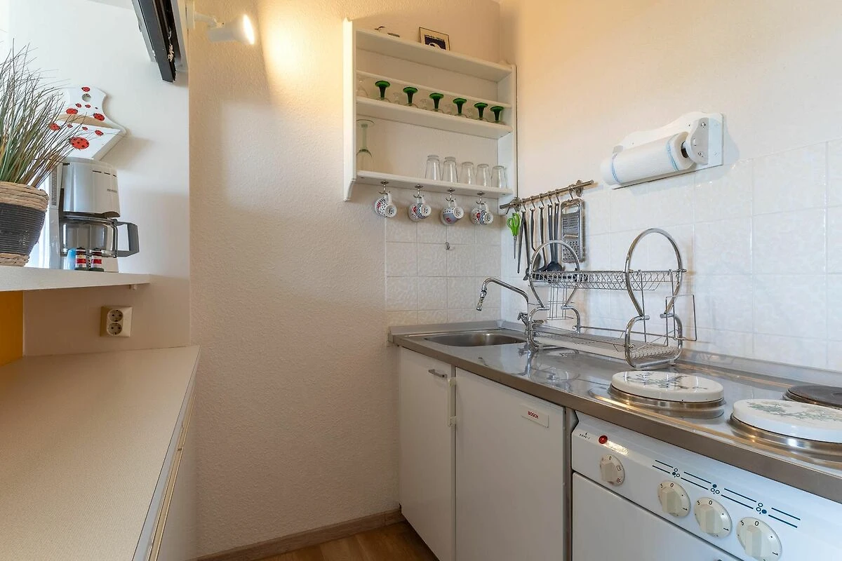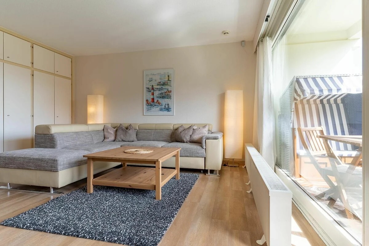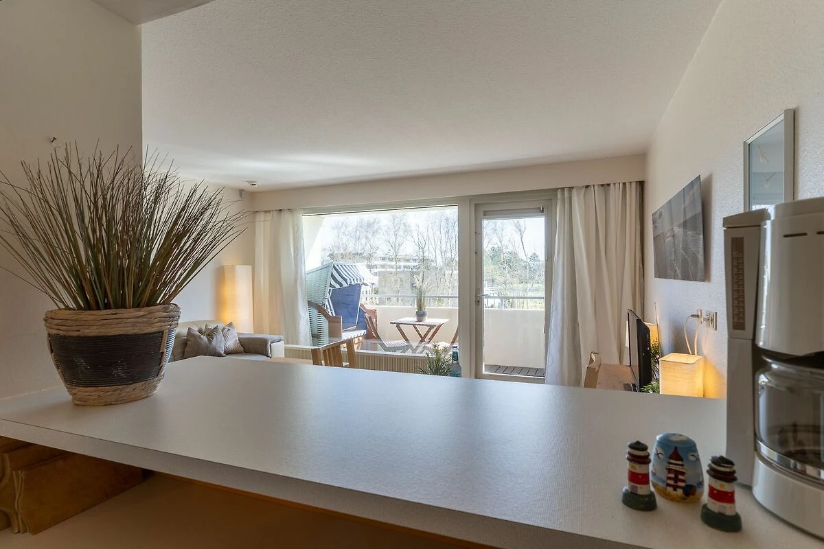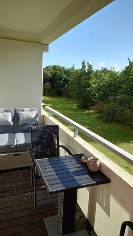 Die ca. 41qm große Wohnung befindet sich im 1. OG einer Parkwohnanlage im Ortsteil Bad. Die Wohnung hat 1 Schlafzimmer mit einem 160x200 Doppelbett, einer Wohnküche mit Zugang zum möblierten Balkon mit Strandkorb und einem Duschbad.