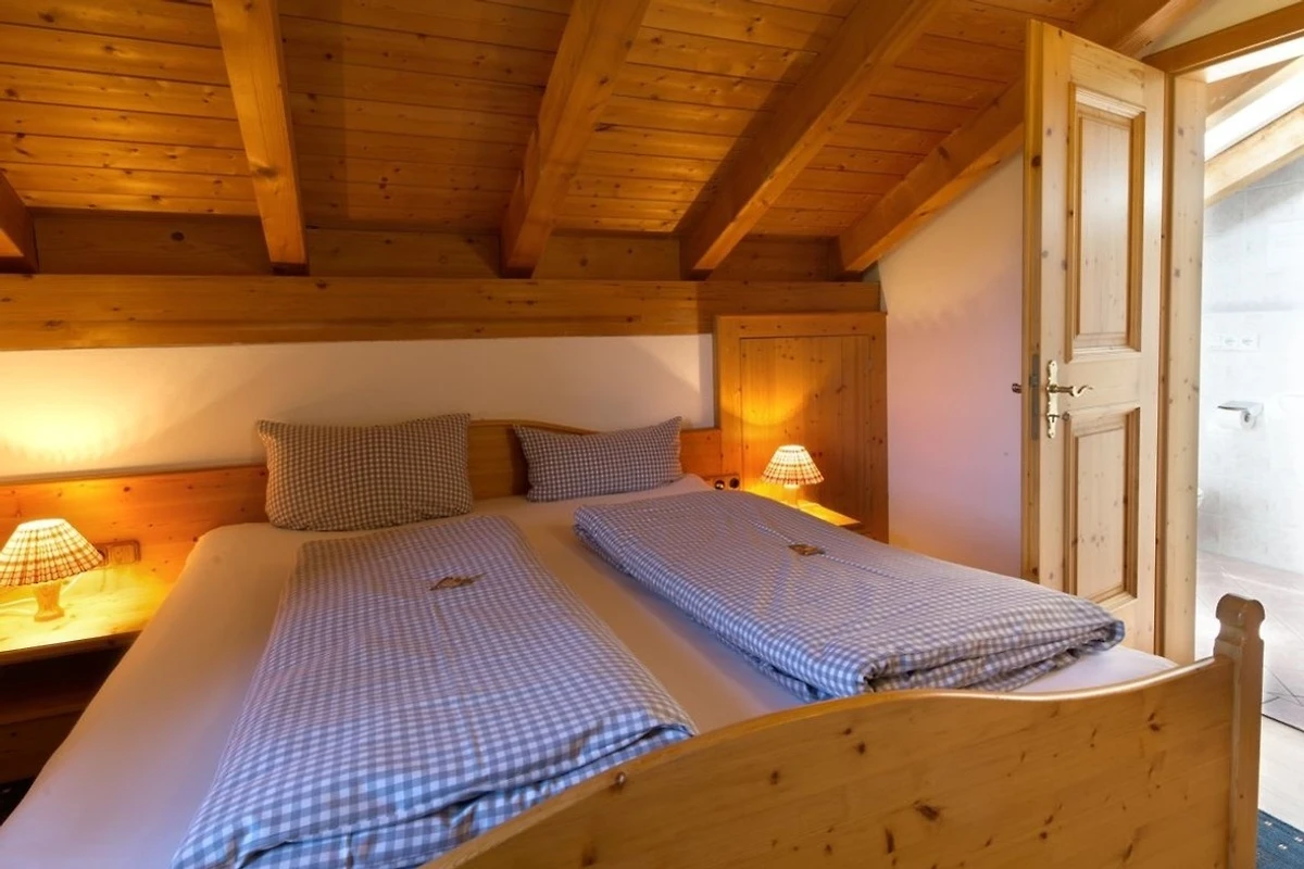 Die Wohnung im 1. Stock hat einen eigenen Eingang über eine private Aussentreppe.Sie gelangen direkt in die Küche mit Küchenzeile, hier ist auch das Gäste-WC. Durch eine Tür gelangen Sie in den grosszügigen Ess- und Wohnbereich, der sich zur Galerie nach oben öffnet. Das gemütliche Schlafzimmer mit Doppelbett, und Ensuite-Bad mit DU/WC liegt auf der Galerie und ist über diese begehbar. Der grosse Balkon mit gemütlichem Mobiliar lässt ab mittags die Sonne mit Blick ins Grüne geniessen. Sie nutzen einen Stellplatz im Carport. Die Wohnung kann zusammen mit dem Ferienhaus "Hirschwiesn" gebucht werden und bildet dann ein grosszügiges Urlaubsrefugium für insgesamt 8 Personen.