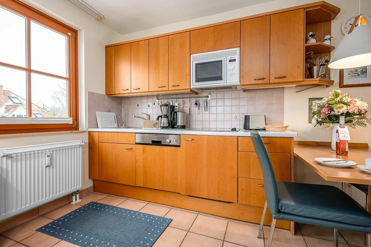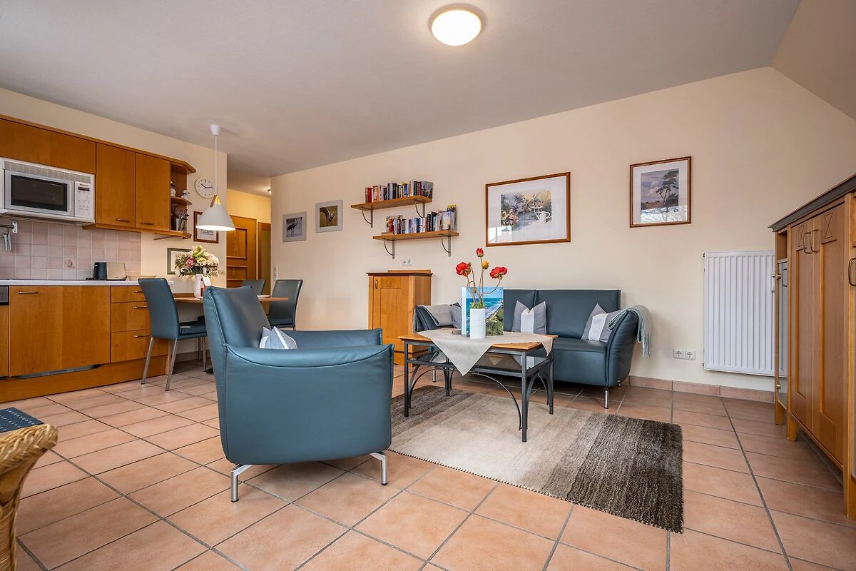 Kaum 150 Meter vom Strand entfernt liegt die Appartmentanlage OEWERN DIEK, zu der diese schöne Obergeschoss-Wohnung gehört. Durch den Einsatz von Holz und farbigen Textilien wird hier eine besonders gemütliche Atmosphäre geschaffen.