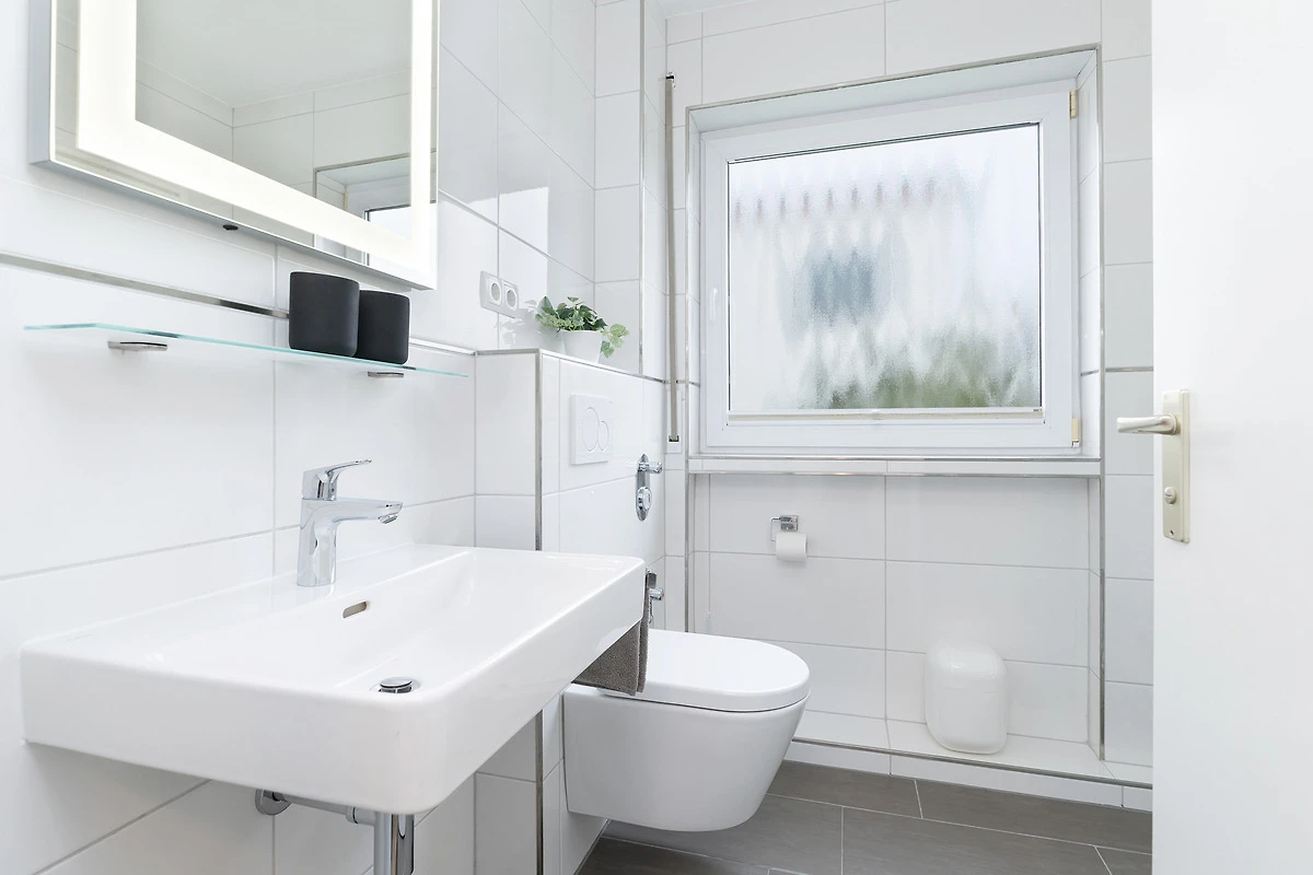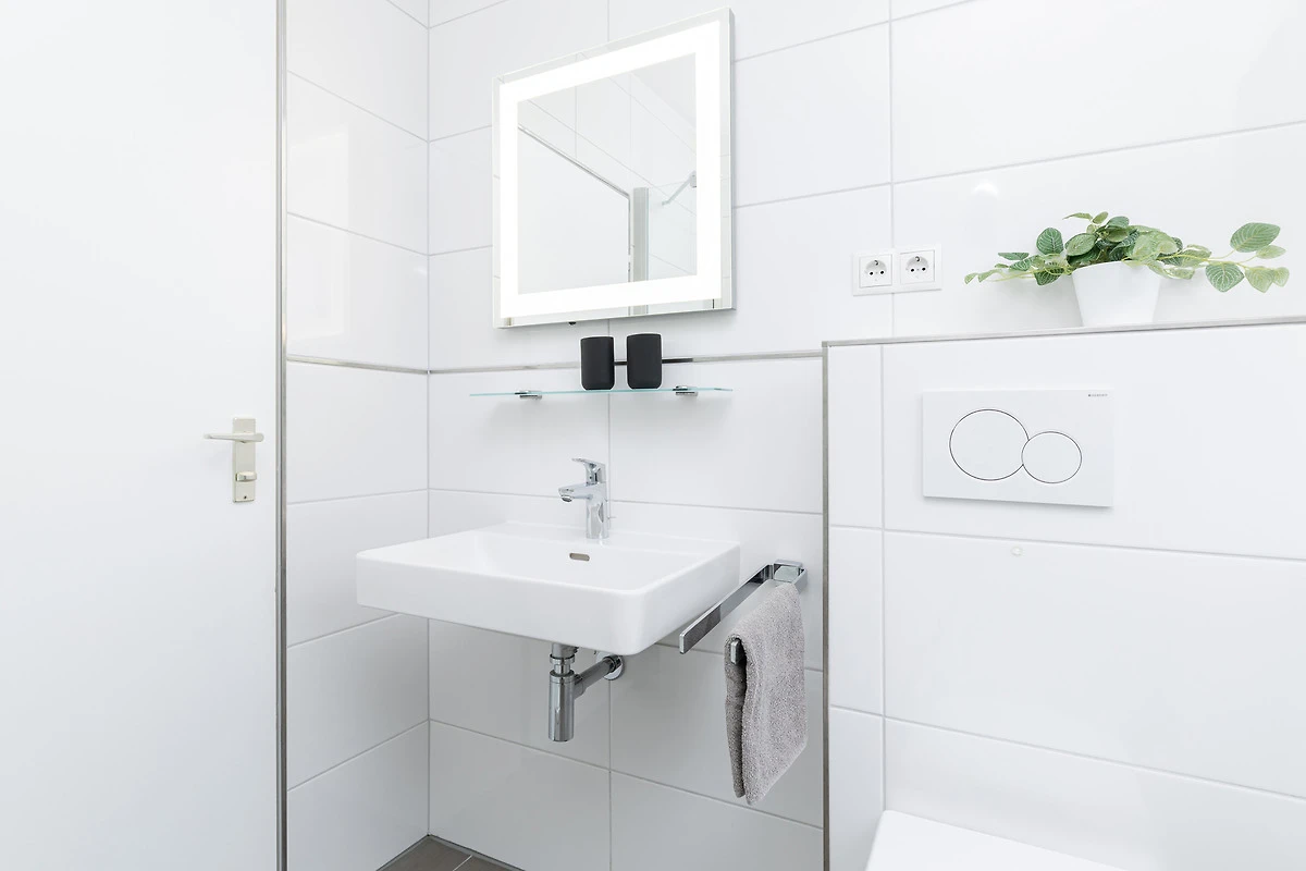 Sehr schöne Wohnung. Verbesserung: 1 zweite Toilettenpapierrolle und ein Ersatzmüllbeutel wären sinnvoll. Daran sollte man nicht sparen. Das sieht abgezählt aus. Ablage in der Dusche wäre sinnvoll. Ansonsten sehr gut.