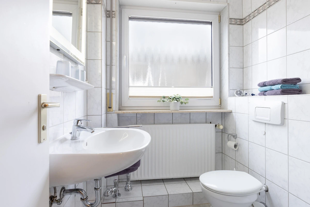 Im Bad stehen Dusche, Waschtisch und Haartrockner zur Verfügung.