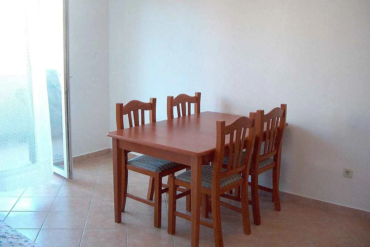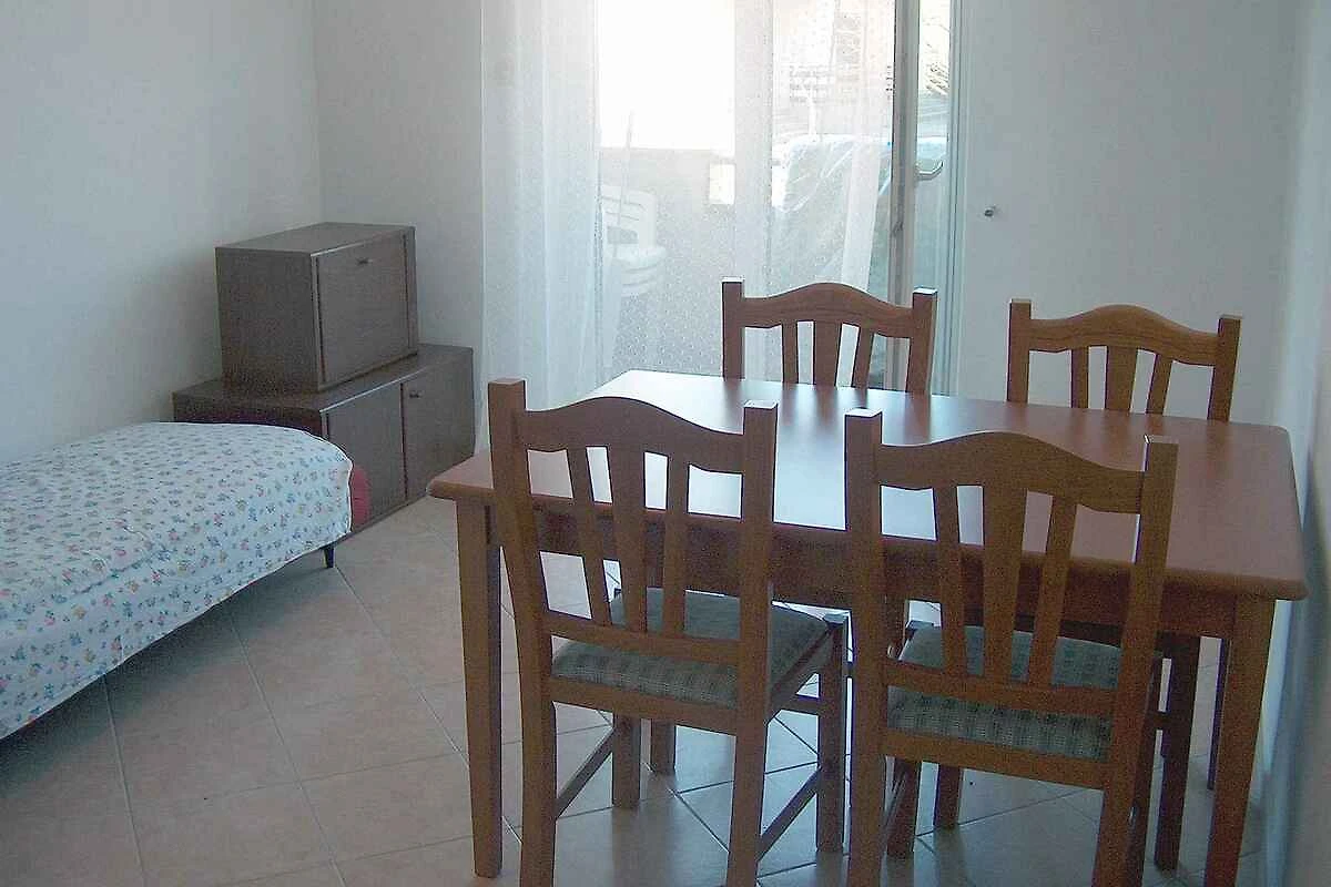 . Wohn/Schlafzimmer mit TV und Essecke. Schlafzimmer mit 1 Doppelbett und Zugang zum Balkon (5 qm, Gartenmöbel). Kochecke im Wohn/Schlafzimmer mit Elektroherd (2 Platten), Kühlschrank (Eisfach) und Kaffeemaschine. Bad mit Dusche und WC.