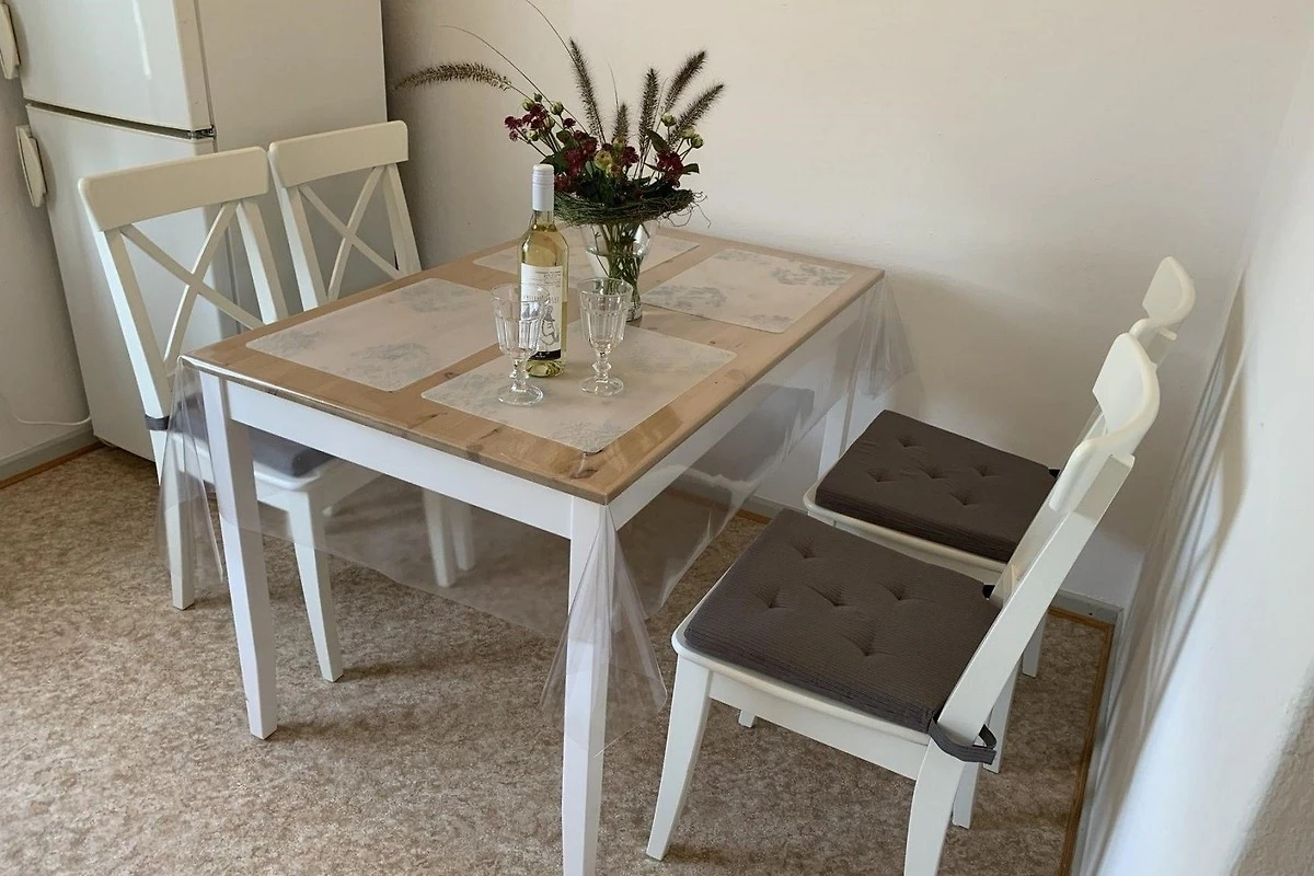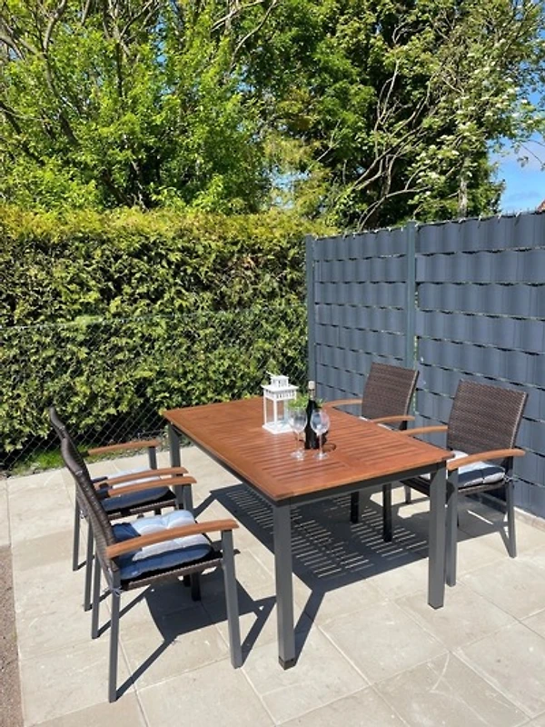 Geniessen Sie laue Sommerabende auf dem Balkon mit bequemen Möbeln – ideal für ein Frühstück im Freien oder ein entspanntes Glas Wein am Abend - perfekt für Familien mit Kindern oder Gäste mit Hund.