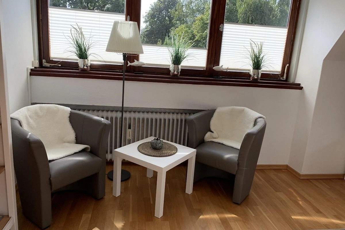 Willkommen in der liebevoll renovierten Ferienwohnung "Nesco", die sich im 1. Obergeschoss des charmanten Ferienhauses Alpo befindet. Das Haus liegt im idyllischen Auricher Ortsteil Sandhorst, umgeben von viel Grün und gepflegten Einfamilienhäusern. Hier erwartet Sie eine entspannte Auszeit mit maritimem Flair – ideal für Erholungssuchende, Naturfreunde und Reisende mit Hund!