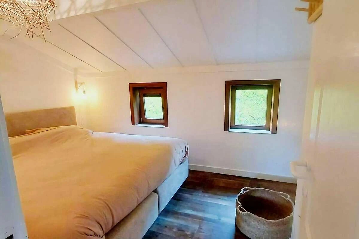 Parterre: (Wohnzimmer(TV, Esstisch, Sitzecke), Küche(Kochplatte, Kaffeemaschine, Kombi-Mikrowelle, Kühlschrank), Schlafzimmer(Doppelbett), Badezimmer(Dusche, Waschbecken), Toilette)