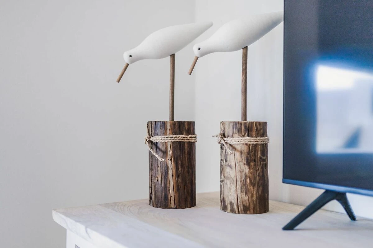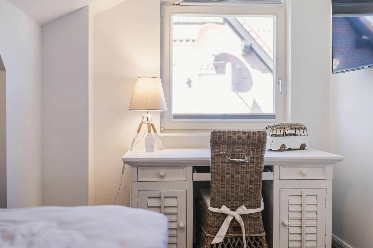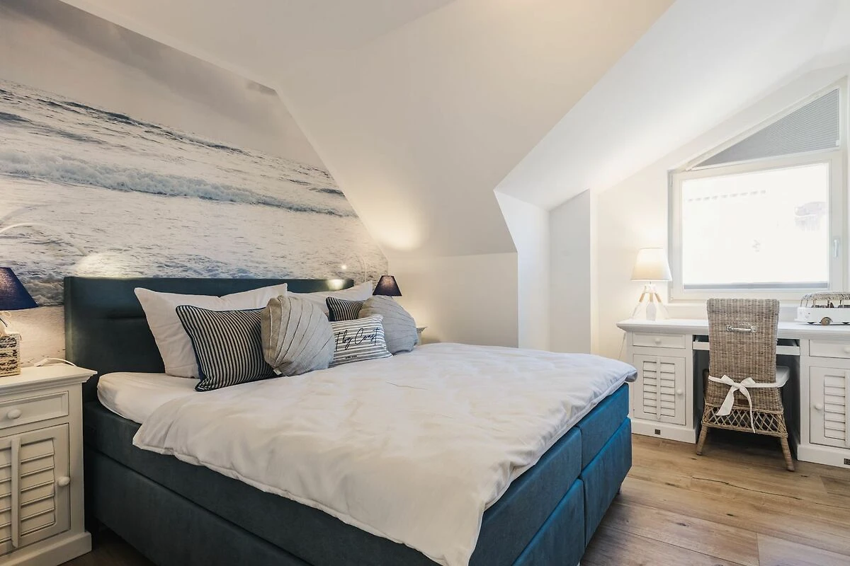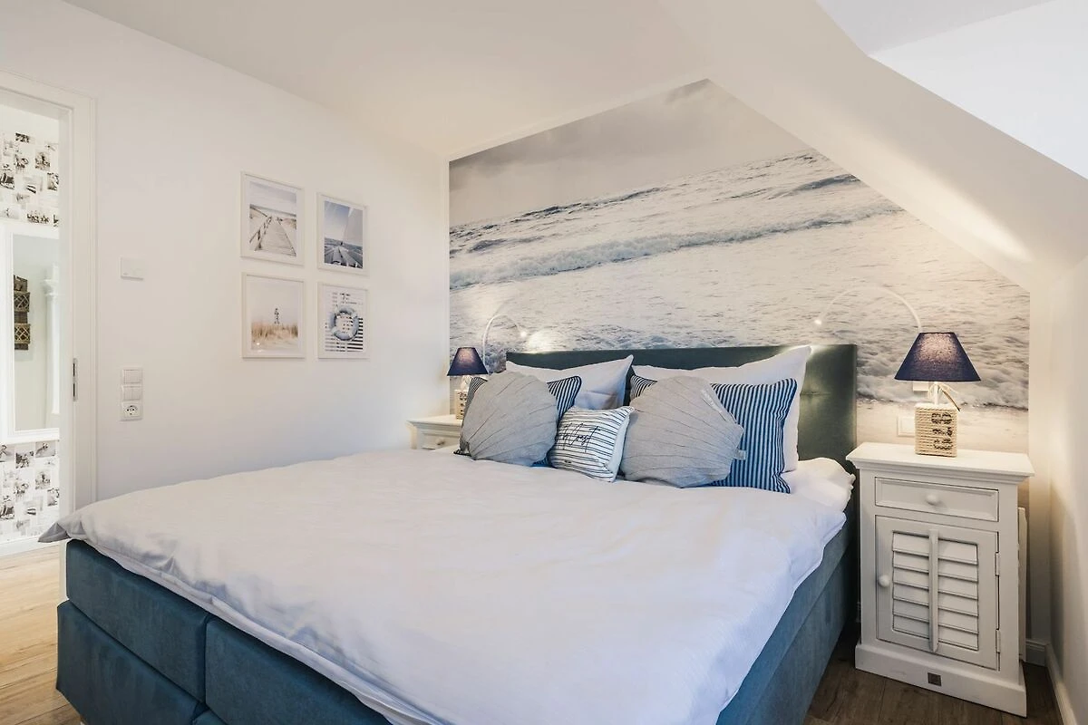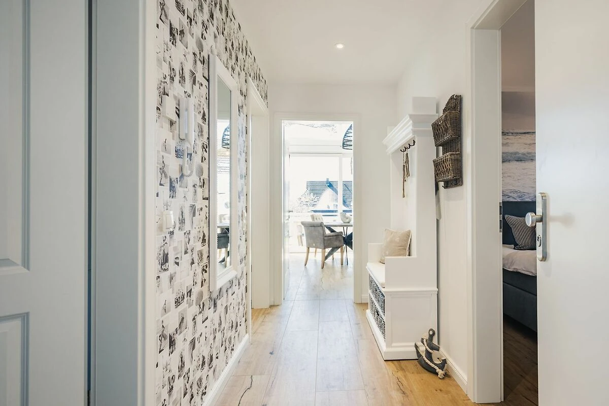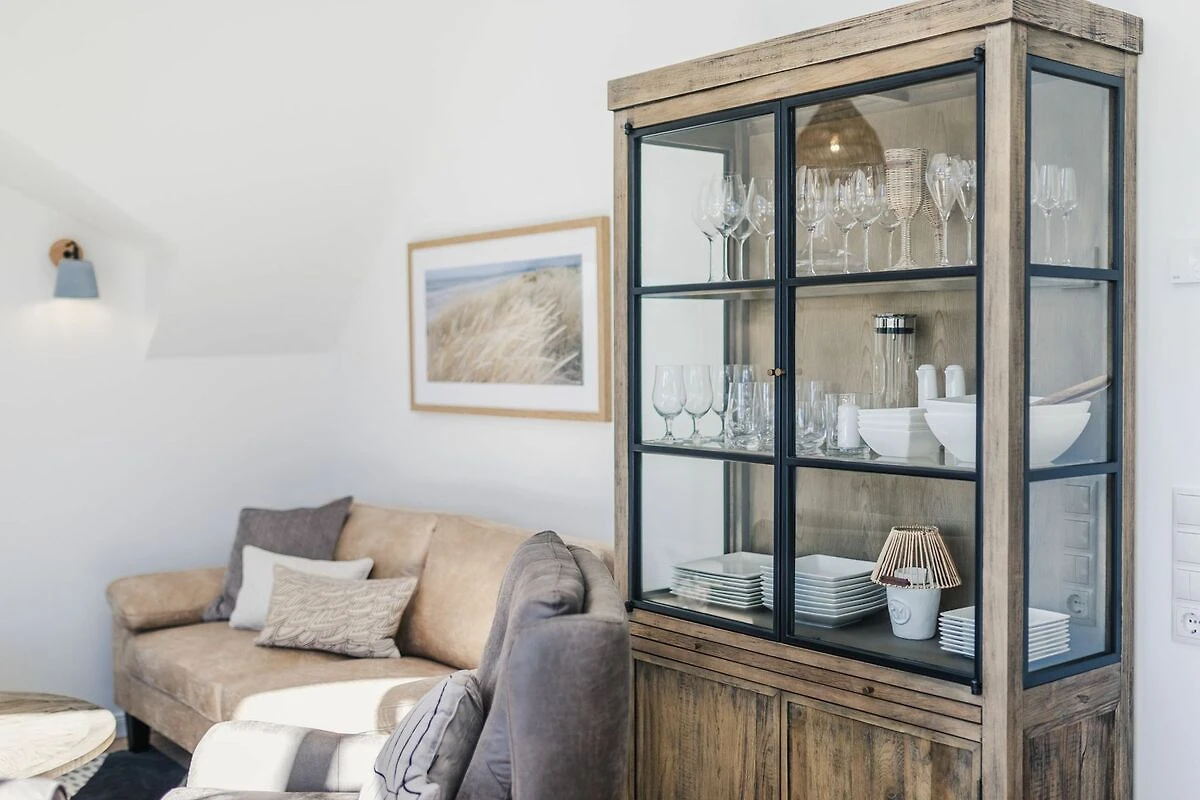 Die Wohnung ist sehr hell und hochwertig eingerichtet und besticht durch viel Liebe zum Detail und zum Meer. Das Herzstück der MeerLiebe ist der grosse und gemütliche Wohn-/ Essbereich mit offen gestalteter Küche mit einer Raumhöhe von bis zu 5 Metern.