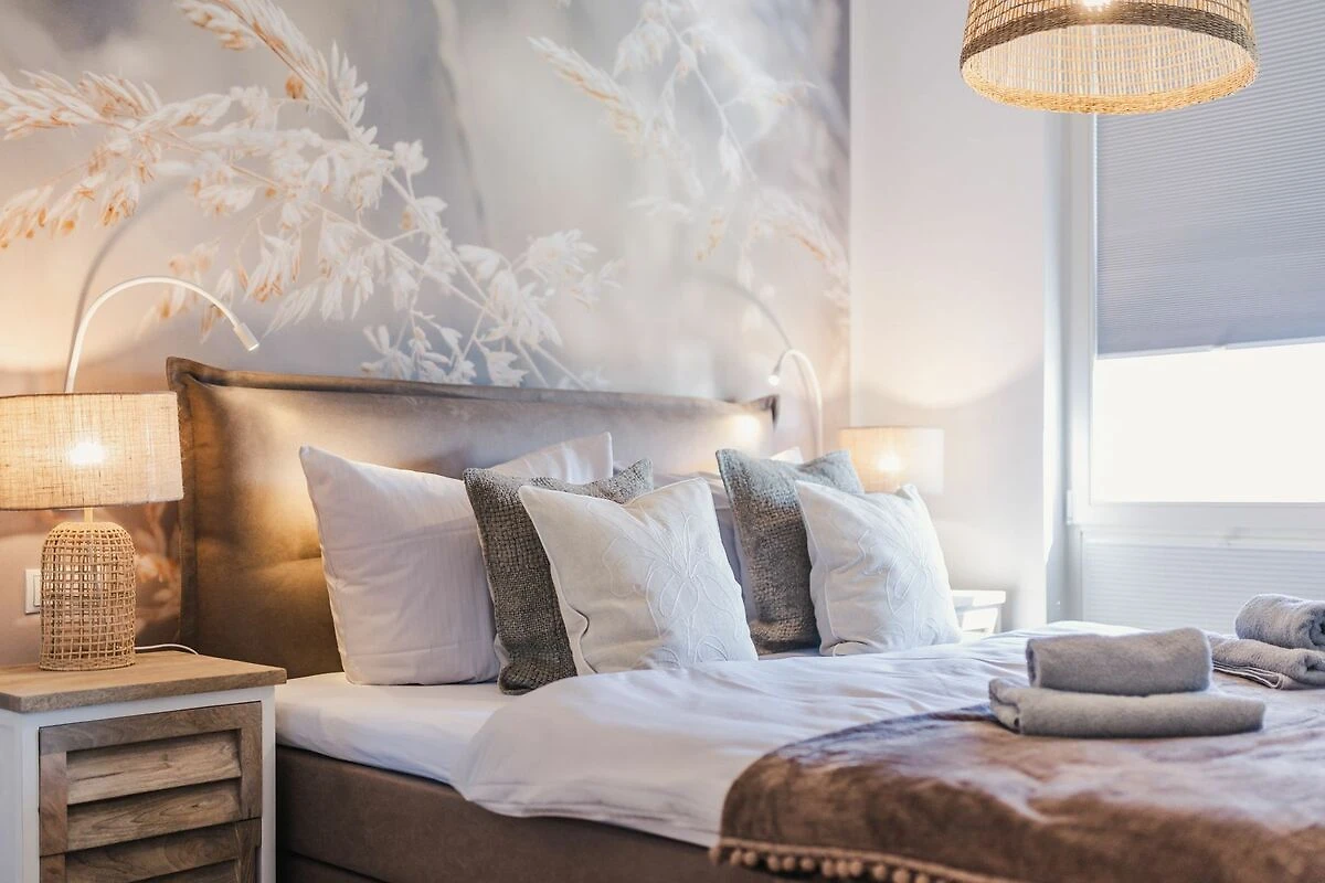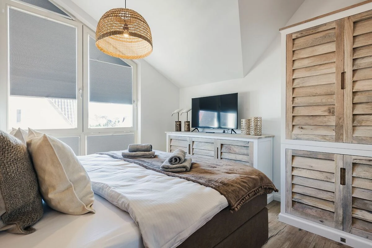 Die zwei gemütlichen Schlafzimmer, ausgestattet mit hochwertigen Boxspring-Betten (180x200 cm), hochwertigen Einbauten und Smart TV´s sorgen für einen erholsamen Schlaf.