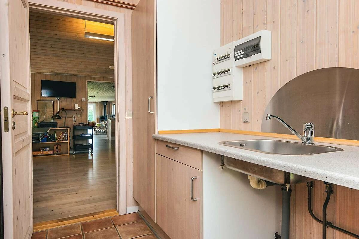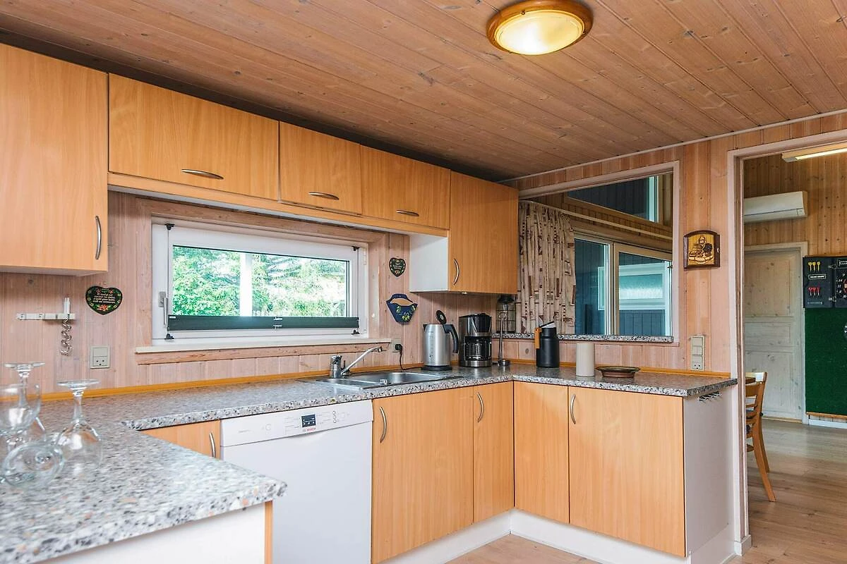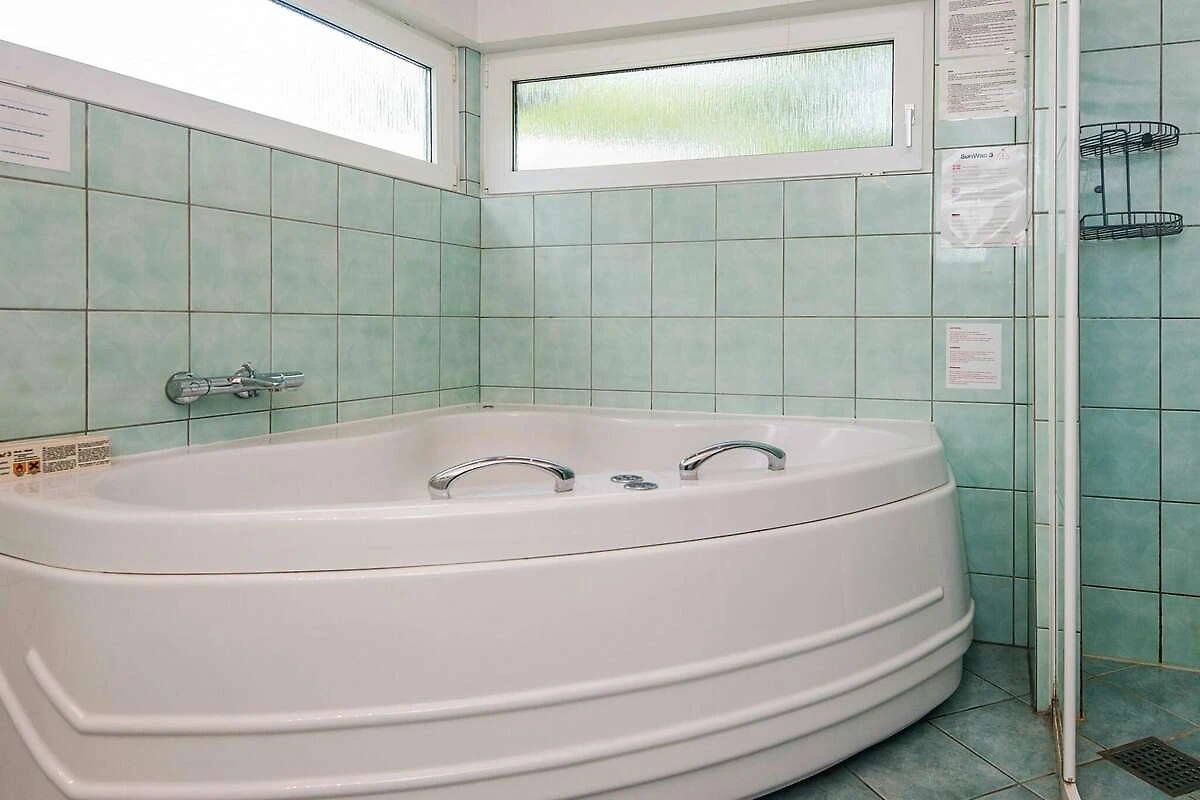 , Wohnzimmer(2x Einzelklappbett ), Küche(Kochherd(elektrisch), Dunstabzugshaube, Kaffeemaschine, Backofen, Mikrowelle, Spülmaschine, Kühl-/Gefrierkombination), Wohn-/Schlafzimmer(TV(Deutsch Fernsehsender, dänische Fernsehsender), Stereoanlage, Hochstuhl, Chromecast), Schlafzimmer(Doppelbett, Babybett), Schlafzimmer(Doppelbett), Schlafzimmer(2x Einzelbett), Schlafzimmer(Einzelbett, 2x Etagenbett), Badezimmer(Fußbodenheizung)(Trockner, Waschbecken, Dusche, Toilette, Waschmaschine), Badezimmer(Fußbodenheizung)(Waschbecken, Dusche, Toilette), Badewanne(im Garten, erwärmt, 6 Personen), Whirlwanne(im Innenbereich, erwärmt, 2 Personen), Sauna(im Innenbereich, 6 Personen), Balkon oder Terrasse, Heizung(elektrisch), Gartenmöbel, Tischtennisplatte, Dart, Billard, Solarenergie, Luft-Luft-Wärmepumpe