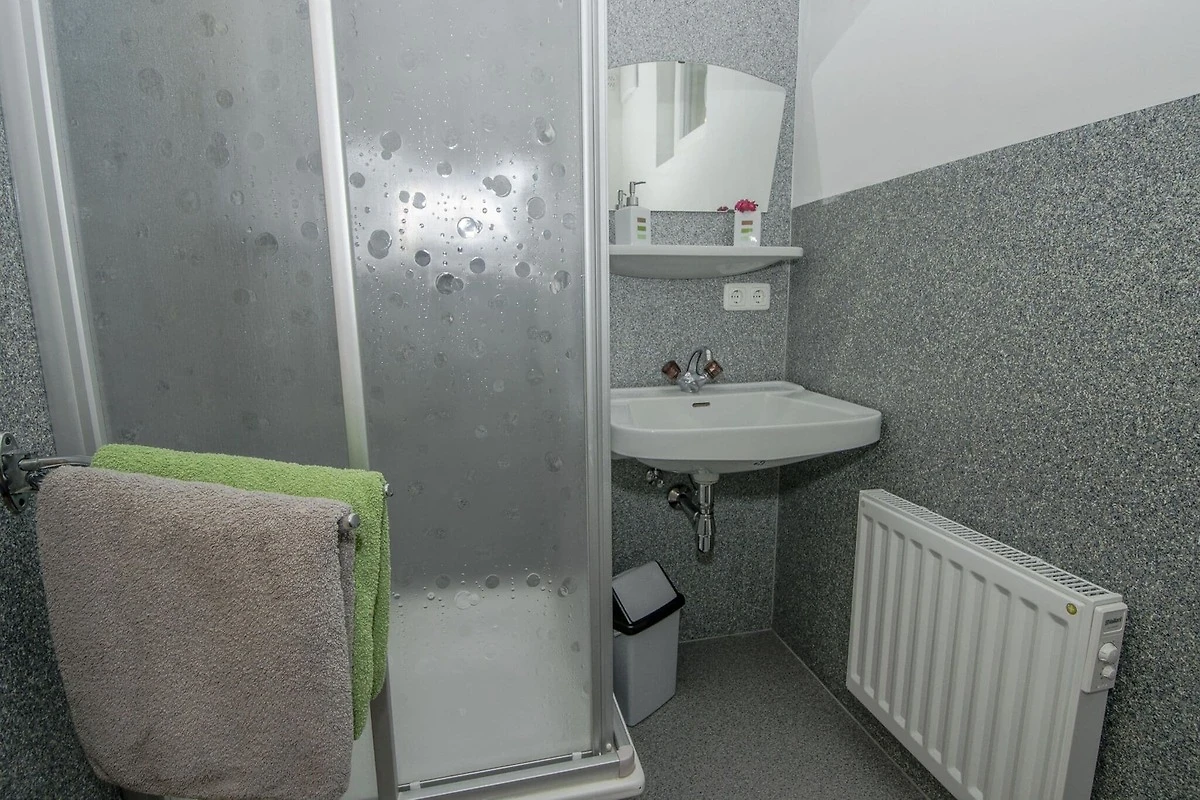 In der 1. Etage: (Schlafzimmer(Doppelbett(200 x 180 cm)), Schlafzimmer(Doppelbett(200 x 180 cm)), Badezimmer(Dusche, Waschbecken, Toilette), Balkon)