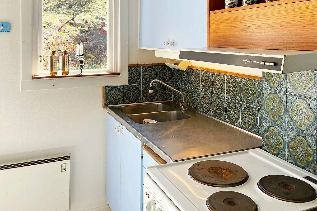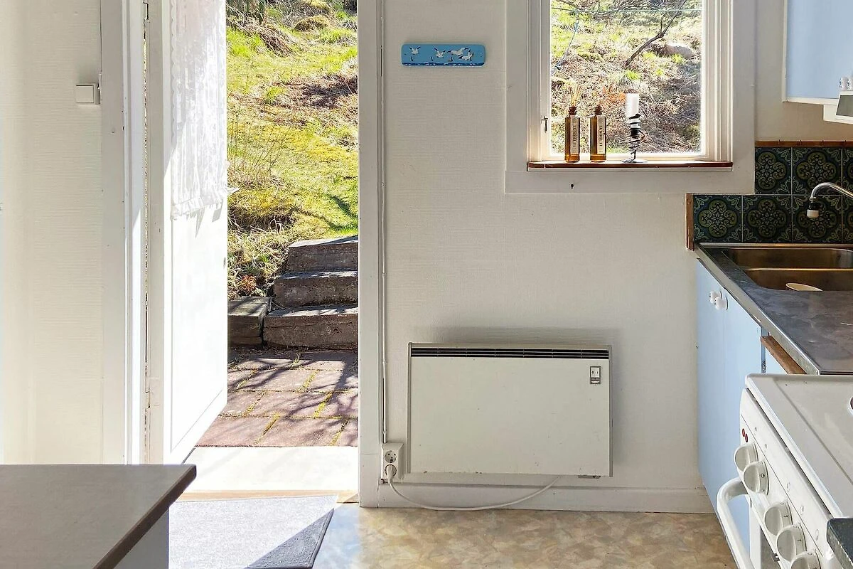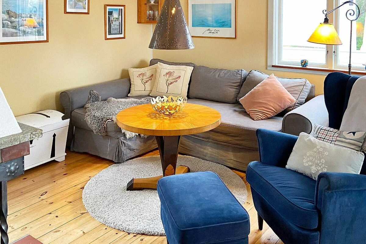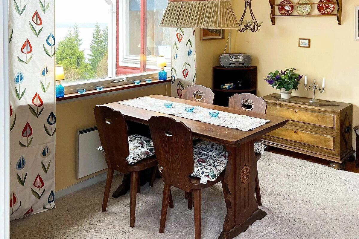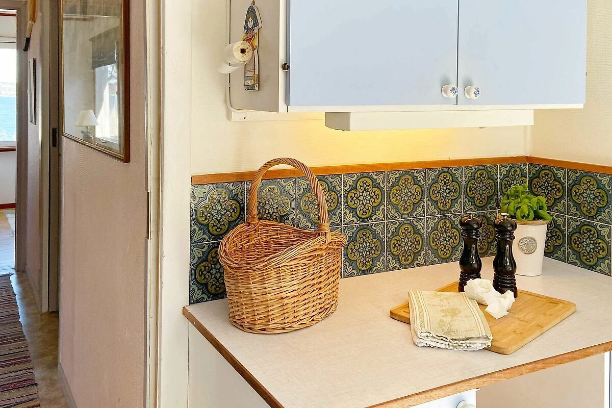 Küche(Holzherd, Kochherd(elektrisch), Dunstabzugshaube, Kaffeemaschine, Mikrowelle, Kühlschrank(+ Gefrierfach), Wasser vom Brunnen), Wohn-/Schlafzimmer(Doppelklappbett , TV(schwedische Fernsehsender), Kaminofen), Schlafzimmer(Doppelbett), Schlafzimmer(Einzelbett), Badezimmer(Waschbecken, Sitzbadewanne, Toilette), Heizung(elektrisch), Terrasse(überdacht), Gartenmöbel, Grill