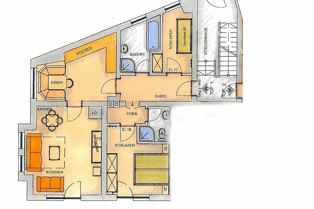 Schlafmöglichkeiten gesamt: 6