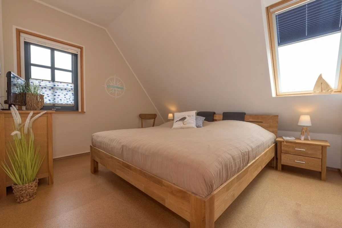 Zwei der drei Schlafräume verfügen über 180x200 cm Betten. Im dritten Schlafraum (im Spitzdach) stehen zwei Einzelbetten.