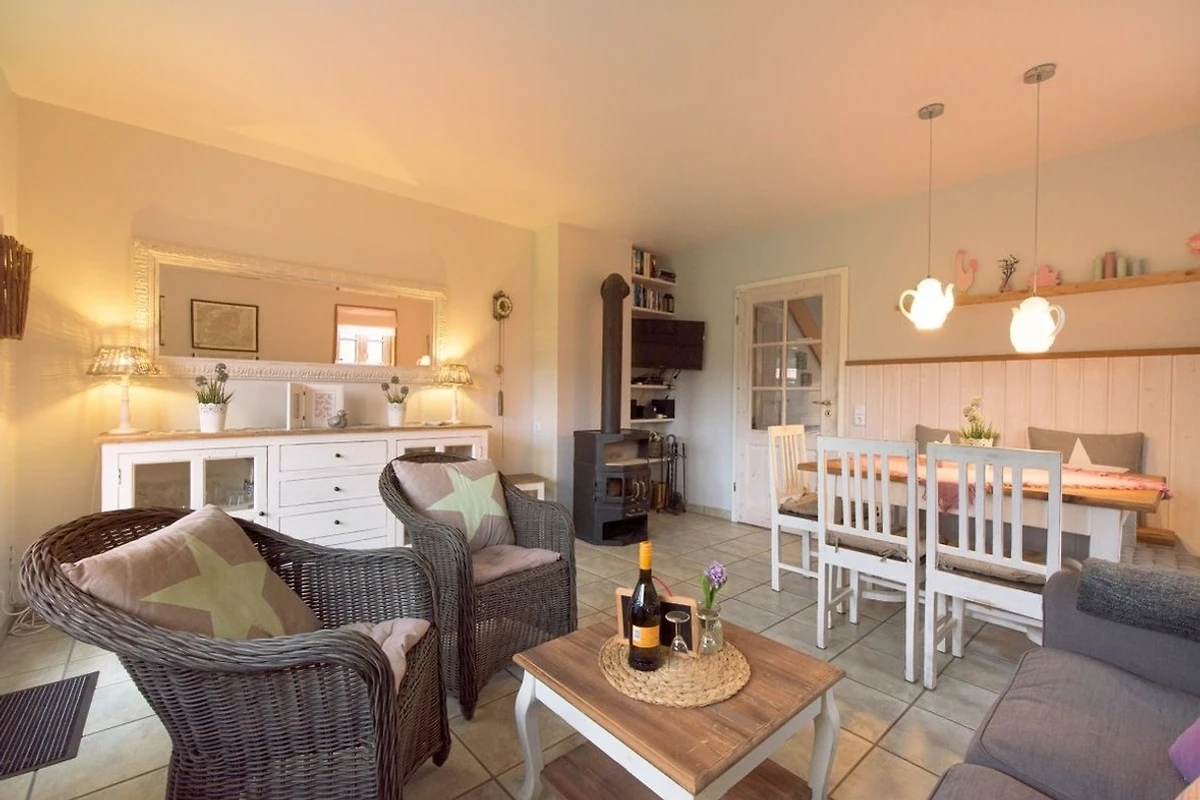 In ruhiger Lage, mit Blick auf Feld und Wald sind es etwas über fünf Minuten zum Strand. Am Waldrand befindet sich auch das Wildschweingehege in Sichtweite. Zum Spazieren finden Sie reichlich Gelegenheit in den Wald- und Wiesenwegen die in direkter Nähe beginnen.