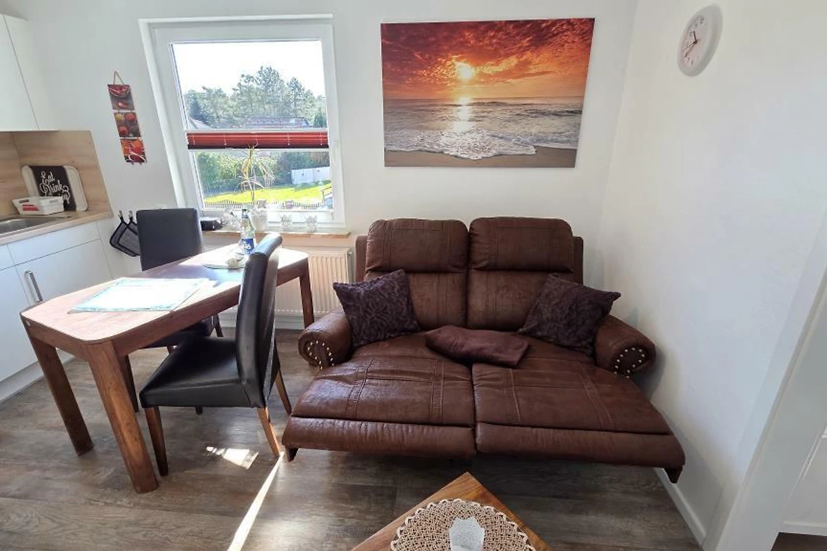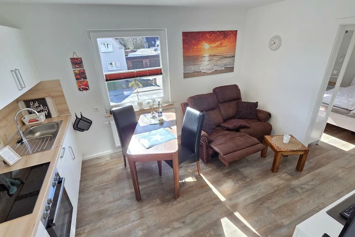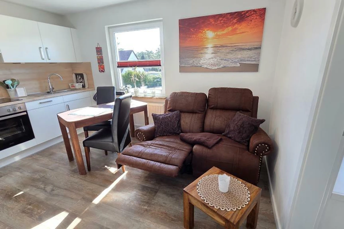 Diese renovierte Ferienwohnung wurde liebevoll und gemütlich eingerichtet. Es steht Ihnen ein Schlafraum mit einem neuen Hasena - Doppelbett (1,80x2m) für ein angenehmes Schlafgefühl zur Verfügung. Im gemütlichen Wohnraum lässt es sich auf dem Sofa bequem sitzen und, dank der Relaxfunktion, entspannt die Füsse hochlegen. Eine Küchenzeile mit allem Wichtigen ist im Wohnraum mit integriert. Zusammen kochen und schnacken lässt sich so wunderbar vereinen. Die gut ausgestattete Küchenzeile verfügt über Backofen, Kühlschrank, Gefrierfach und Geschirrspüler. Ein TV und ein CD-Radio befindet sich in der auch in der Wohnung.