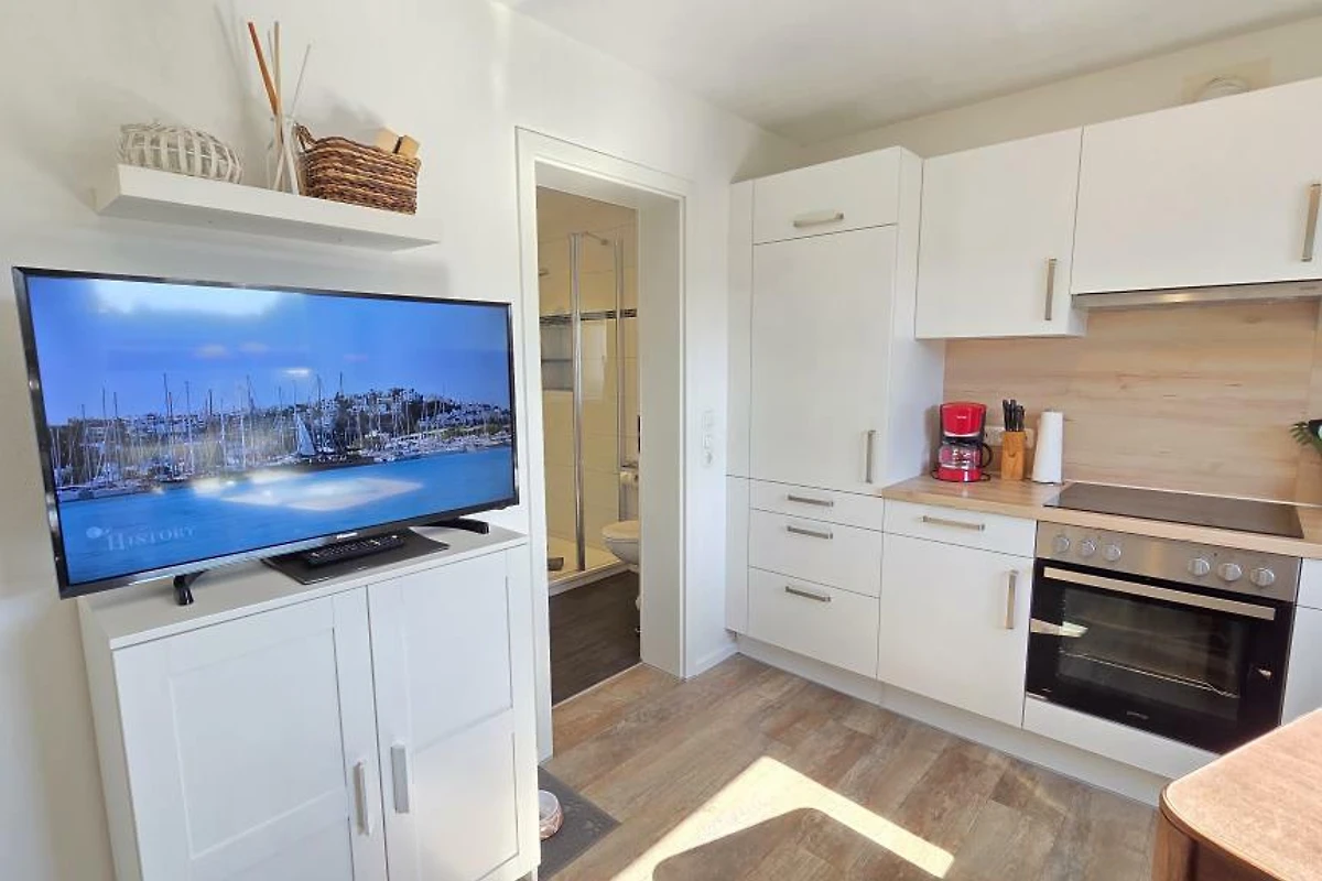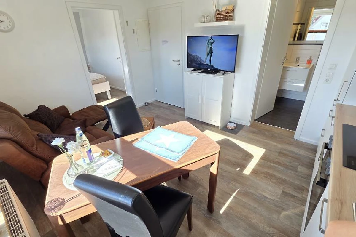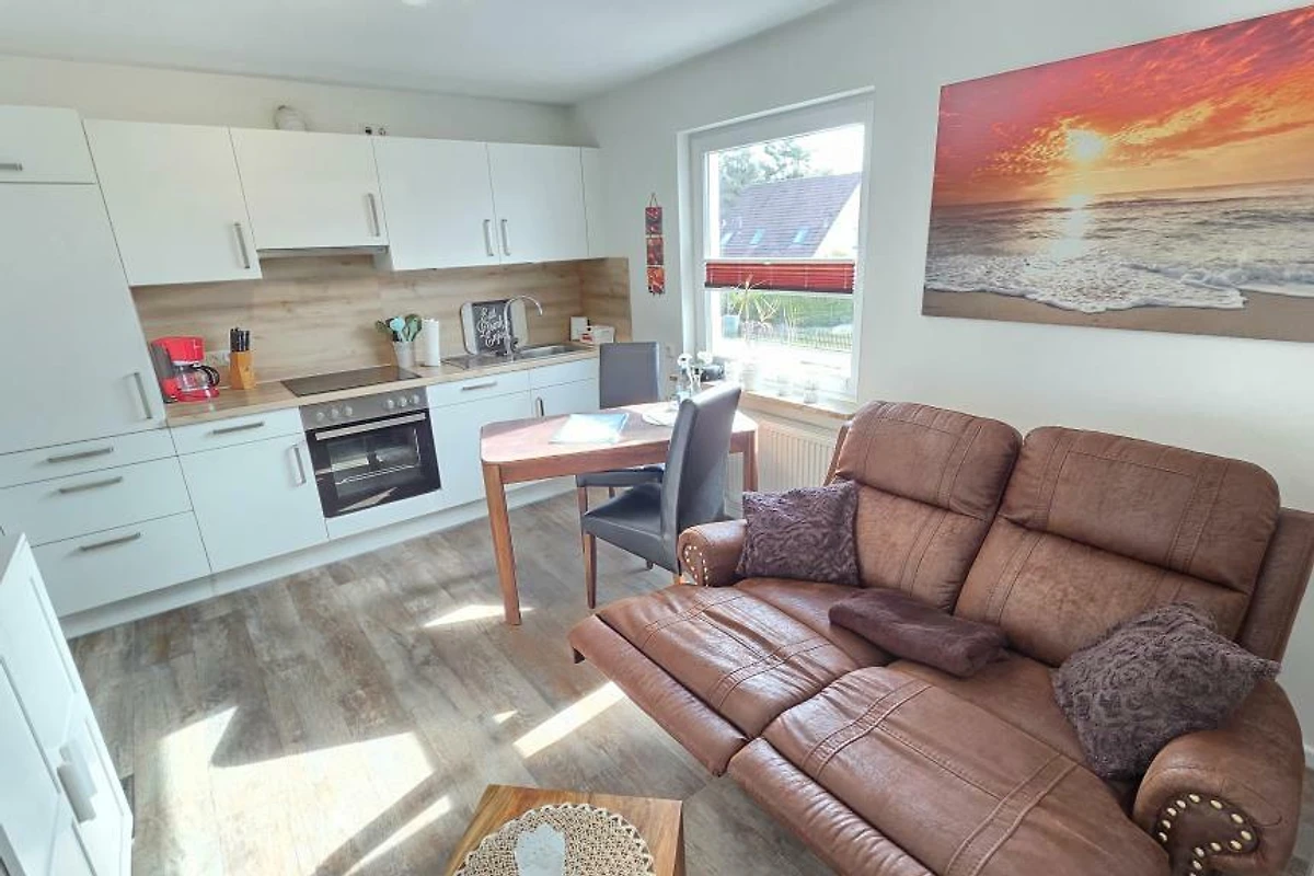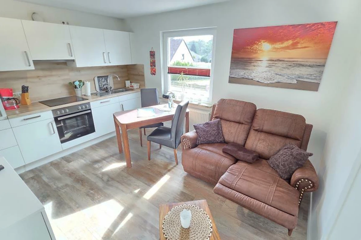 Diese renovierte Ferienwohnung wurde liebevoll und gemütlich eingerichtet. Es steht Ihnen ein Schlafraum mit einem neuen Hasena - Doppelbett (1,80x2m) für ein angenehmes Schlafgefühl zur Verfügung. Im gemütlichen Wohnraum lässt es sich auf dem Sofa bequem sitzen und, dank der Relaxfunktion, entspannt die Füsse hochlegen. Eine Küchenzeile mit allem Wichtigen ist im Wohnraum mit integriert. Zusammen kochen und schnacken lässt sich so wunderbar vereinen. Die gut ausgestattete Küchenzeile verfügt über Backofen, Kühlschrank, Gefrierfach und Geschirrspüler. Ein TV und ein CD-Radio befindet sich in der auch in der Wohnung.
