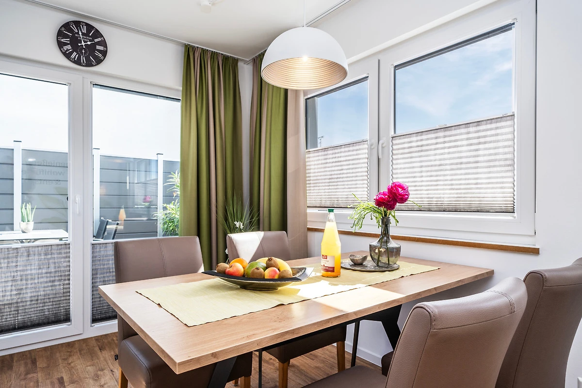 Die Ferienwohnung ist für bis zu 4 Personen belegbar, sie verfügt dabei über eine ausziehbare Wohncouch.