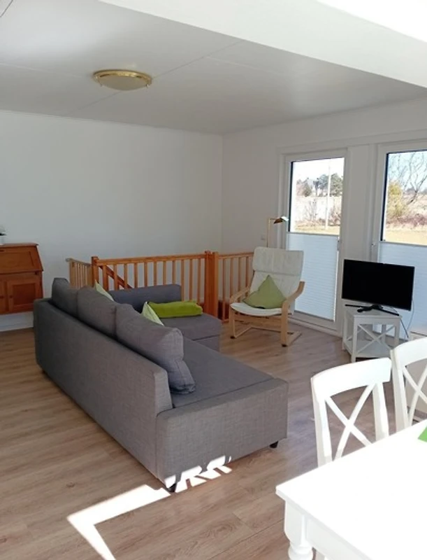 Die Ferienwohnung bietet eine elegante und komfortable Unterkunft, ideal für Familien und Gruppen. Sie verfügt über zwei Schlafzimmer, eines mit einem Doppelbett und das andere mit drei Einzelbetten, die ausreichend Platz für bis zu fünf Personen bieten. Die moderne Küchenzeile ist vollständig ausgestattet mit einem Elektro-/Gasherd, Backofen, Kühlschrank, Geschirrspüler, Kaffeemaschine und Toaster, sodass die Zubereitung von Mahlzeiten mühelos gelingt.