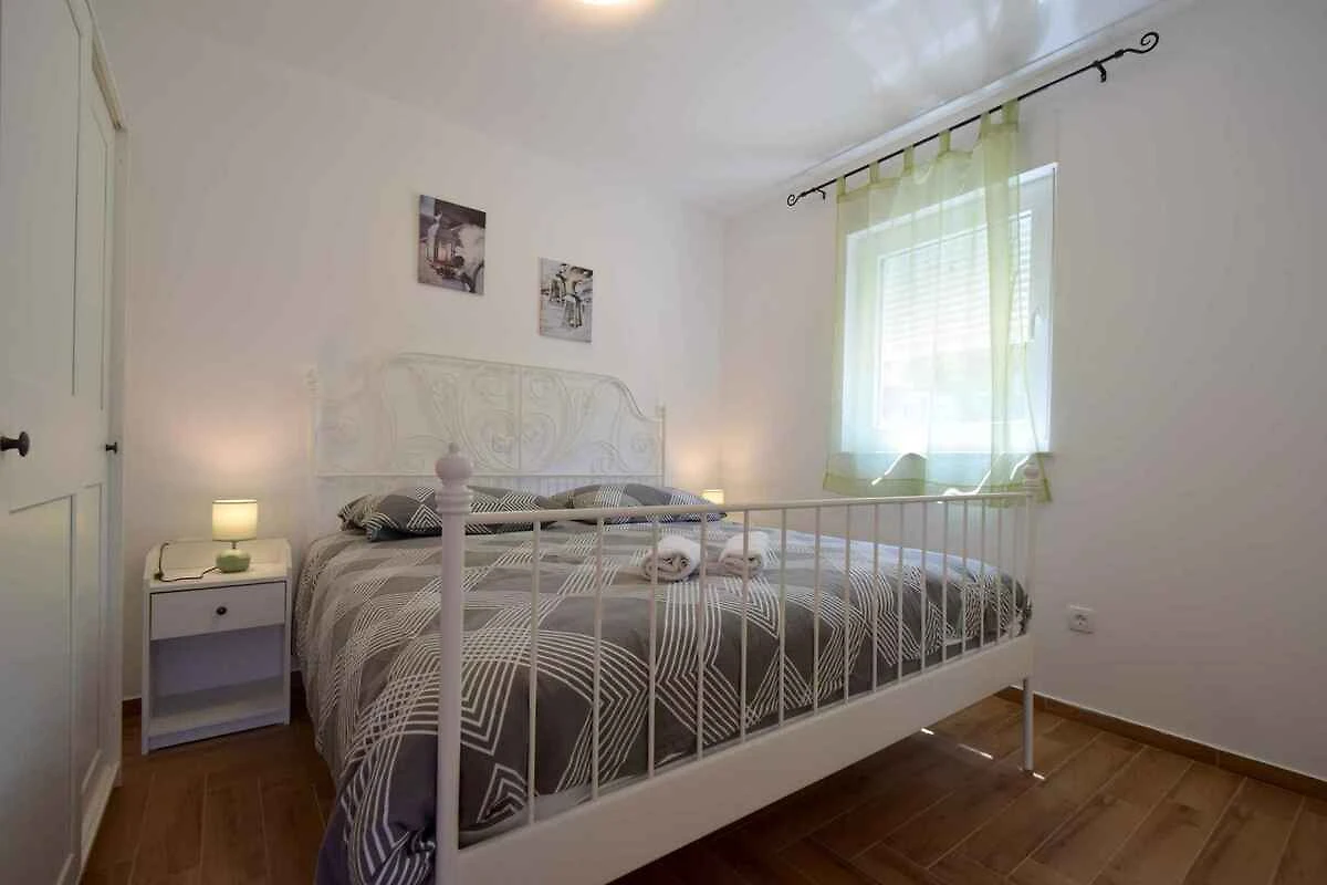 Risika. Das Ferienhaus befindet sich auf einem 350 qm grossen Grundstück. Der Vermieter wohnt nicht im Haus oder auf dem Grundstück. Das neu renovierte Ferienhaus, umgeben von viel Grün, befindet sich in Risika, einem kleinen Dorf, das für seinen Sandstrand bekannt ist, in der Nähe von Vrbnik auf der Insel Krk, in einer ruhigen Umgebung, ideal für einen erholsamen Urlaub. Die Zufahrt erfolgt über einen Weg (asphaltiert). Parkplatz (für 2 Pkws) auf dem Grundstück.