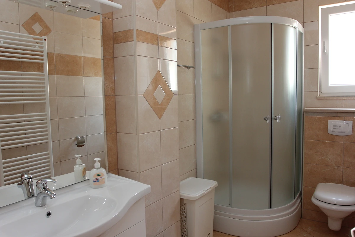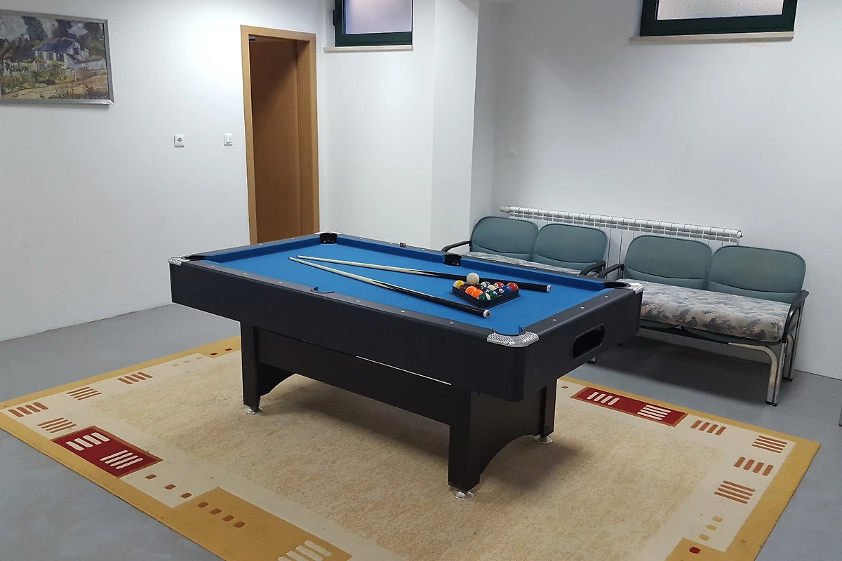 Die modern ausgestattete Villa besteht aus zwei identischen Wohneinheiten. Insgesamt verfügt sie über 6 Schlafzimmer, 7 Badezimmer, 2 Wohnzimmer mit integrierten Küchen sowie eine große gemeinsame Sonnenterrasse. Im Untergeschoss finden Sie einen 130 m² großen Aufenthaltsraum mit Spiel- und Fitnessgeräten, darunter Billard, Tischtennis und Tischfußball. Die Ausstattung umfasst WLAN, Privatparkplätze und einen Garten mit Grill. Das Haus ist vollklimatisiert (jedes Zimmer mit individuell steuerbarer Klimaanlage).